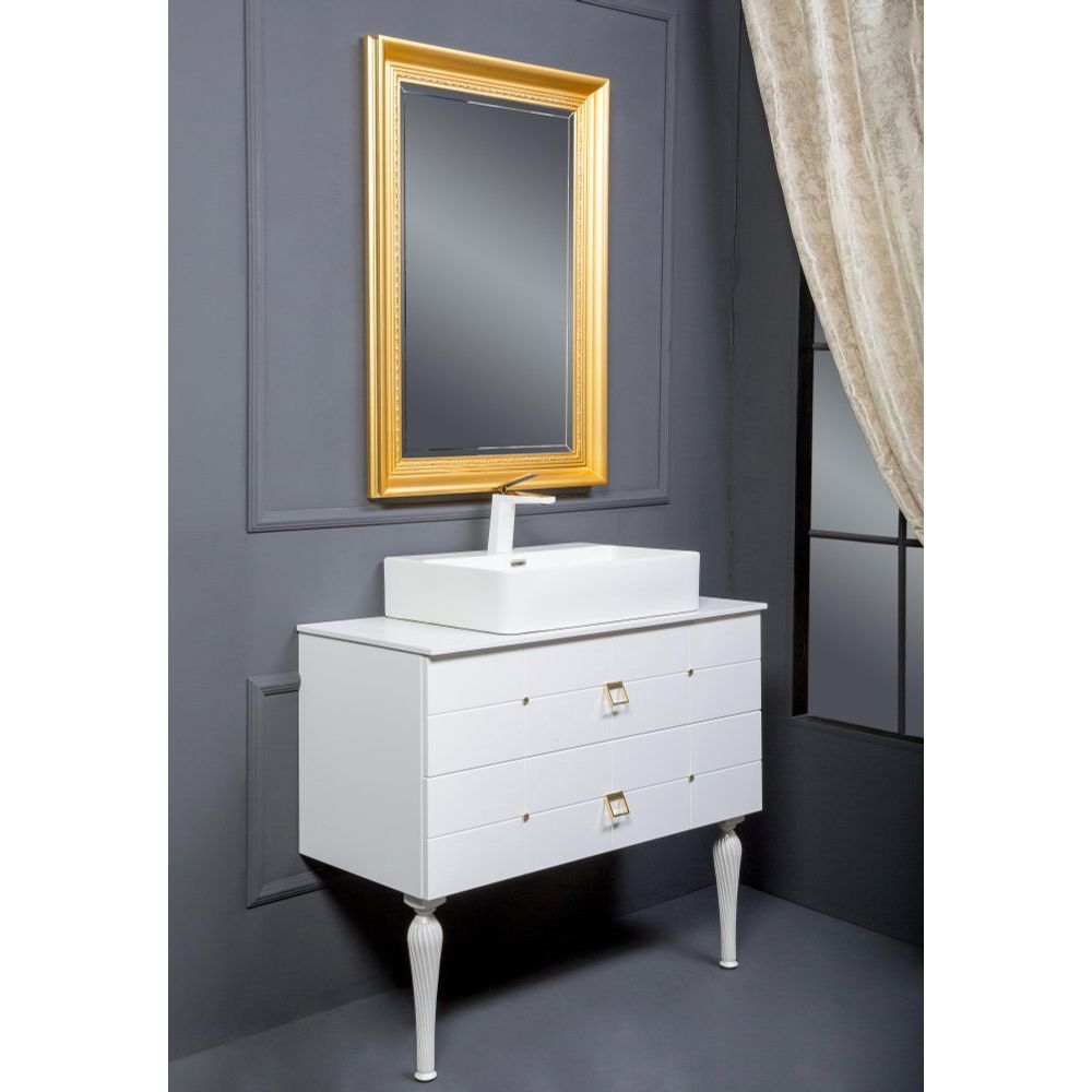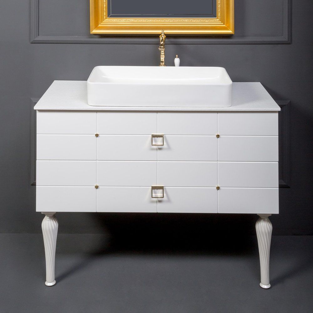 Тумба с накладной раковиной Armadi Art Vallessi Avangarde Piazza 100 выполнена из прочного МДФ и отделана акрилом, что обеспечивает долговечность и стойкость к влаге. Размеры тумбы составляют 100x45x40 см, что делает её идеальным решением для ванных комнат различных размеров. Она подвесная и оснащена механизмом доводчика для плавного закрывания ящиков, с фурнитурой в элегантном золотом цвете. Столешница из композитного материала имеет размер 101x46x1 см и оснащена готовым отверстием под смеситель. Раковина из фаянса размером 60x34,5 см поставляется без донного клапана, который можно приобрести отдельно.