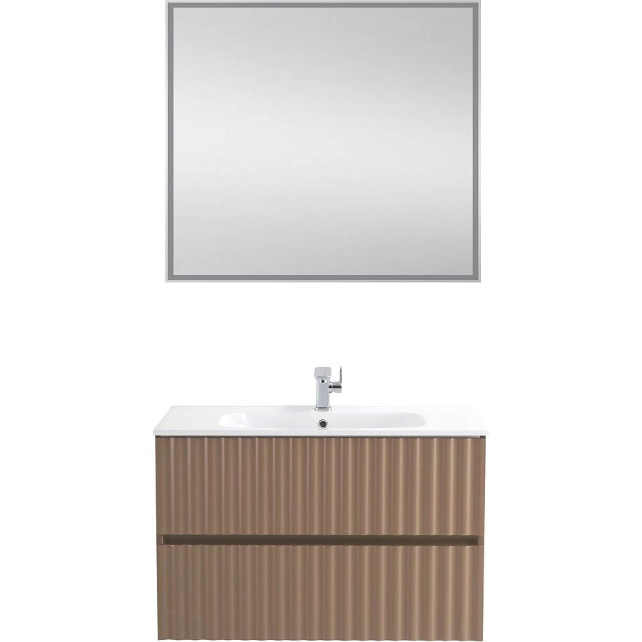 Тумба Art&Max Elegant 90 обладает размерами 90x46,9x55 см и спроектирована как подвесная система. Корпус и фасад выполнены из МДФ, покрытого плёнкой, обеспечивающей долговечность. В ящиках встроена светодиодная подсветка, подчеркивающая современный дизайн. Гарантия на тумбу составляет 2 года. В комплект входит мебельная раковина из фарфора размером 91x18,5 см, со встроенным сливом-переливом и одним отверстием под смеситель. Раковина также покрыта гарантией сроком на 1 год.