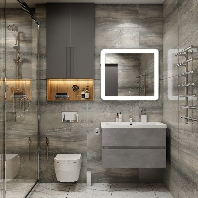 - Подвесная конструкция тумбы экономит пространство и облегчает уборку.
