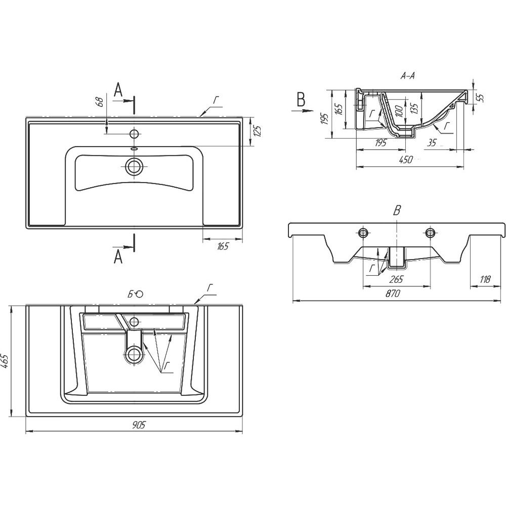 - Раковина из полимерной керамики устойчива к воздействию влаги и повреждениям.
