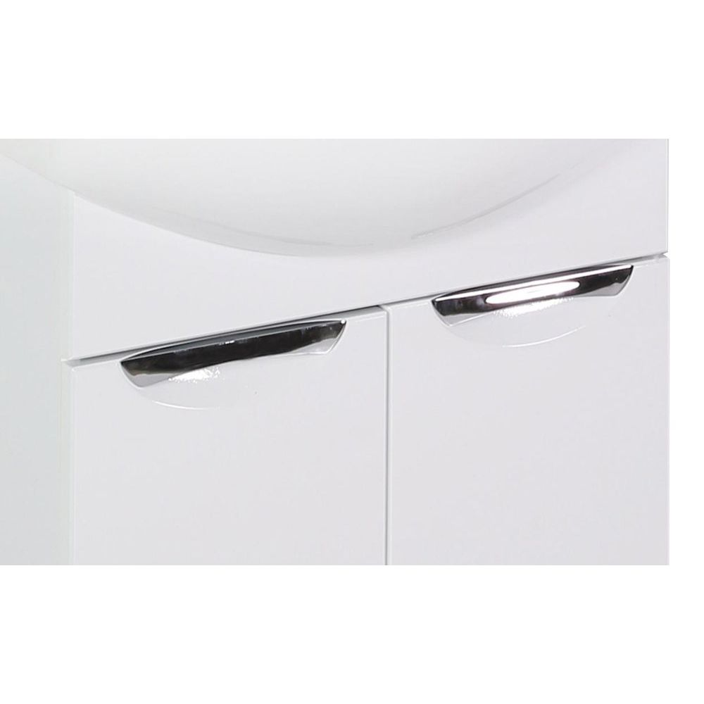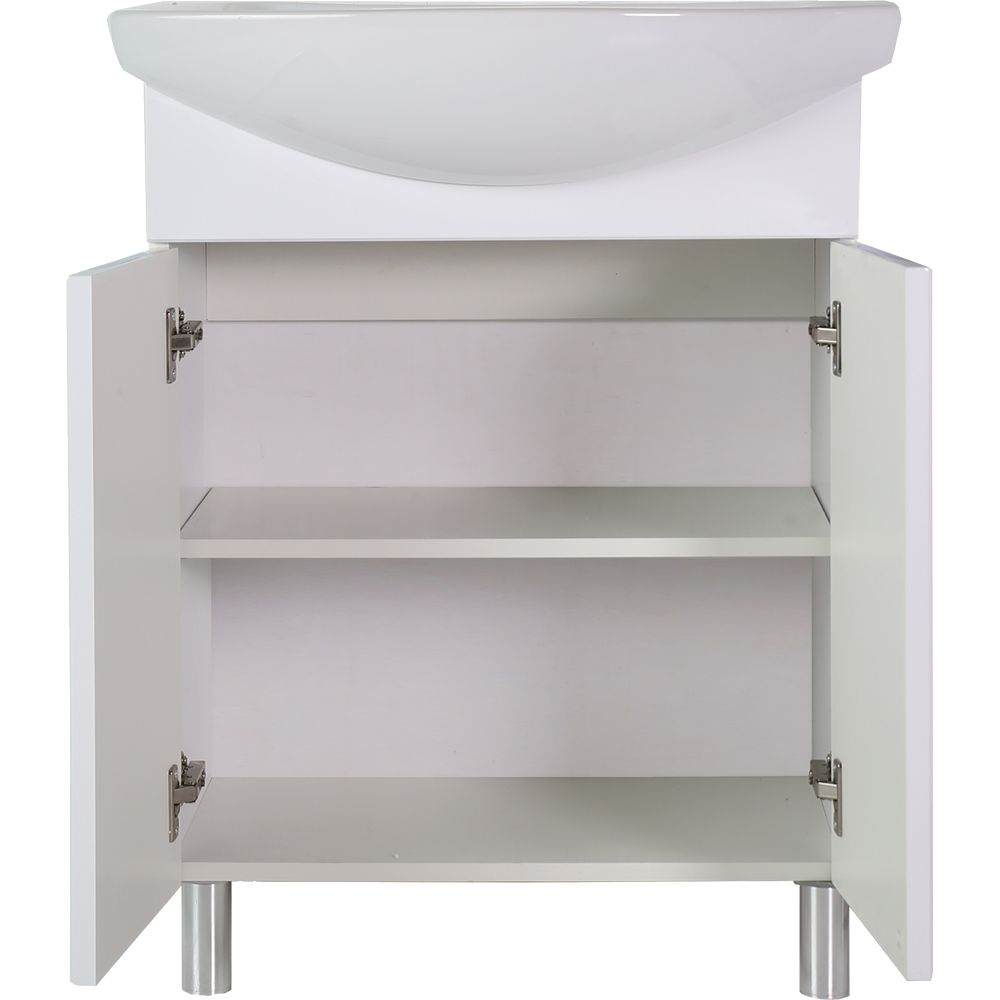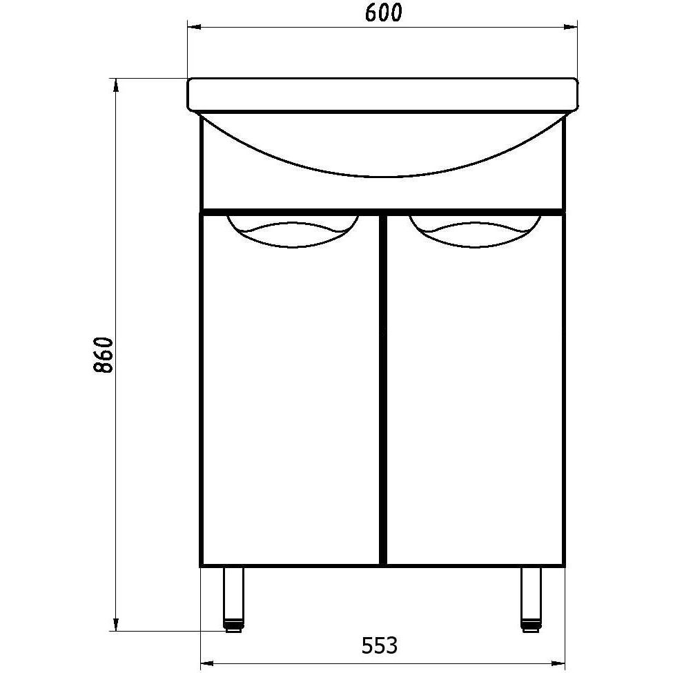 Тумба для комплекта ASB-Mebel Мессина 60/2 имеет размеры 55,3x31,5x86 см и устанавливается на пол. Корпус выполнен из ЛДСП с ламинированным покрытием, а фасад — из МДФ с пленочным покрытием. Хромированная фурнитура подчеркивает современный стиль мебели. Внутри расположены регулируемые по высоте полки. Раковина Santek Балтика 60 с размерами 61x44,5 см изготовлена из прочного фарфора и оснащена встроенной системой слив-перелив. Для установки требуется донный клапан, который можно приобрести отдельно. Гарантия на тумбу — 1 год, на раковину — 10 лет. Производство Россия.