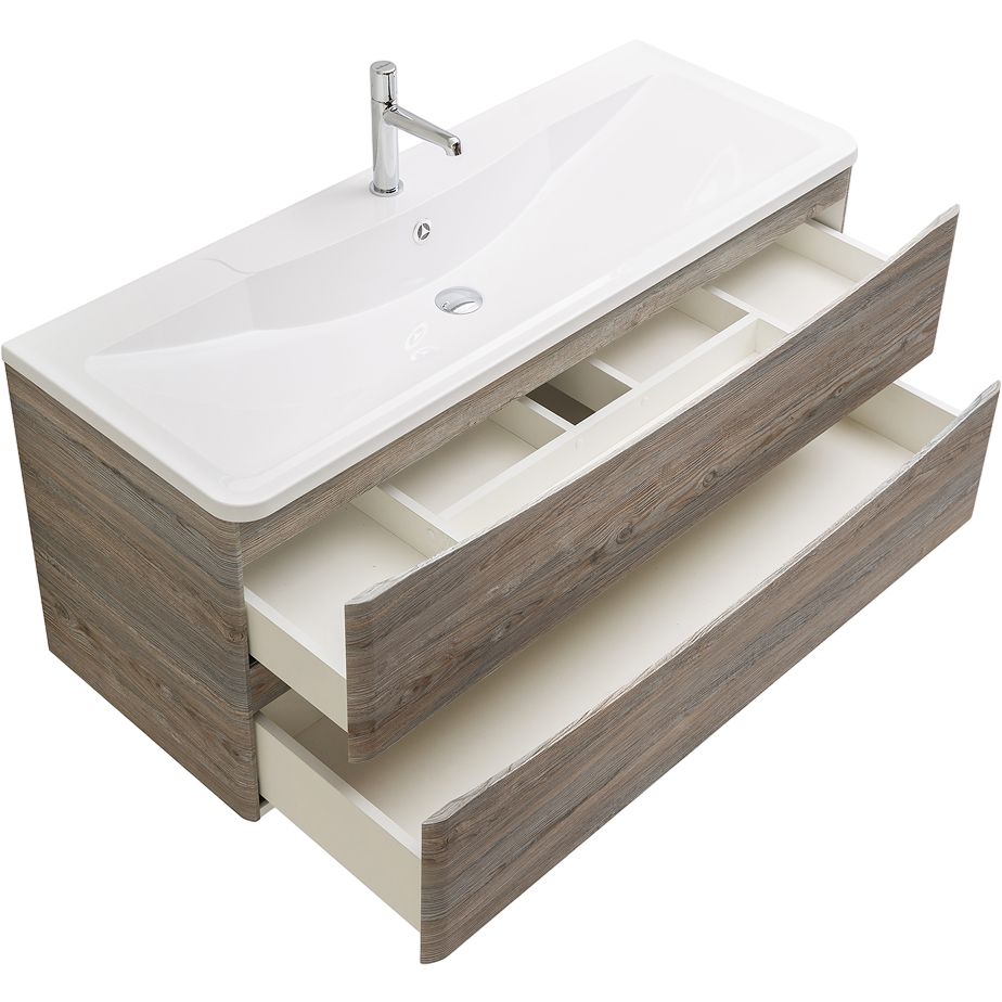 Этот комплект включает подвесную тумбу BelBagno Acqua 120 с размерами 120x45,5x50 см, изготовленную из влагостойкого МДФ с пленочным покрытием. Ящики оснащены механизмом доводчика, обеспечивающим плавное закрывание и отсутствие шума. Мебельная раковина BelBagno из литьевого мрамора размером 120x45,5 см оснащена слив-переливом и имеет одно готовое отверстие для смесителя диаметром 3.2 см. Обратите внимание, что донный клапан необходимо приобрести отдельно.