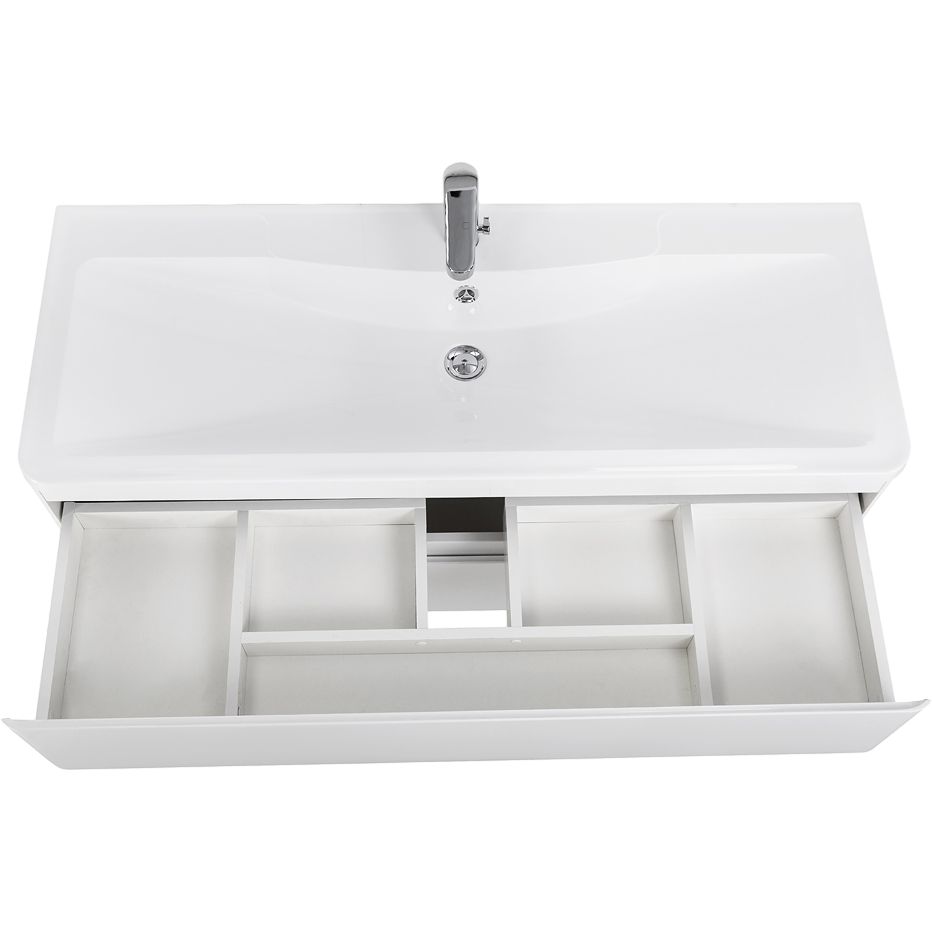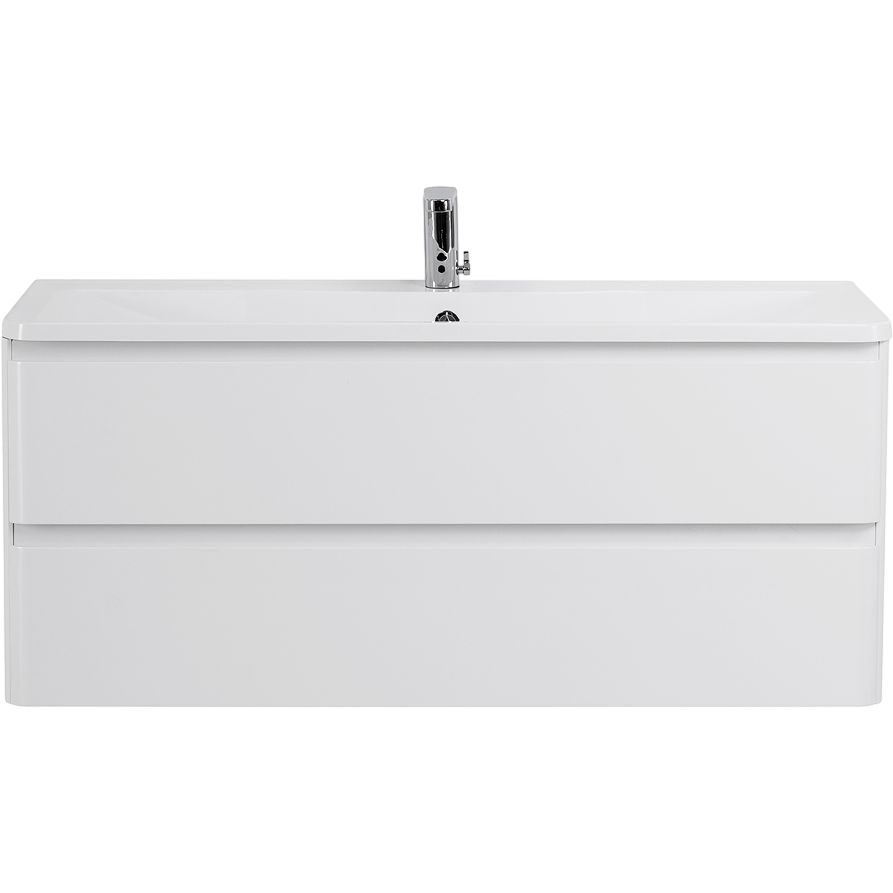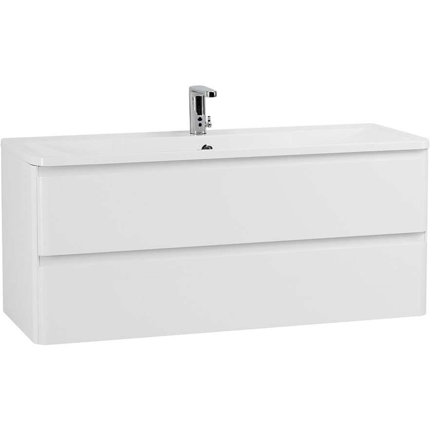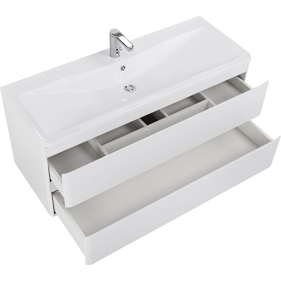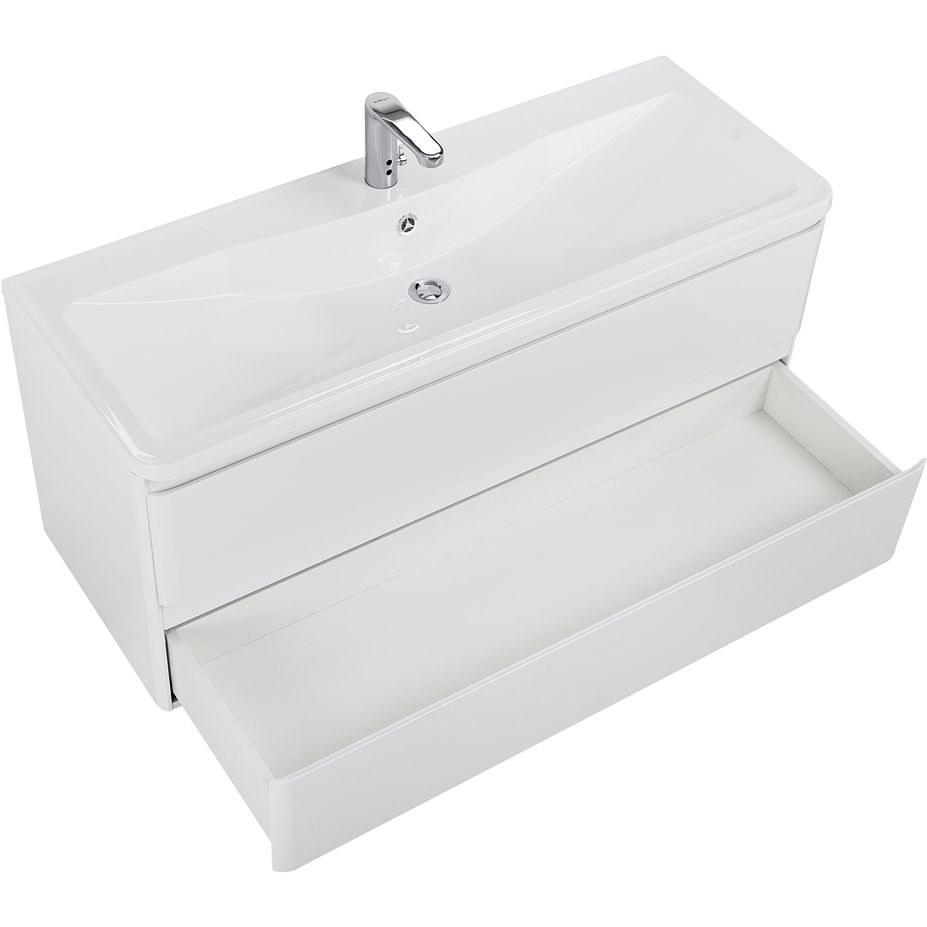 Тумба с раковиной BelBagno Albano 120 — это сочетание элегантности и функциональности, которое идеально вписывается в любую современную ванную комнату. Белоснежная глянцевая поверхность добавляет помещению легкости и визуальной чистоты, а подвесная конструкция экономит полезное пространство. Эта тумба из коллекции Albano не только украсит ваше помещение, но и обеспечит удобное хранение благодаря вместительным ящикам с механизмом доводчика, который обеспечивает плавное и тихое закрывание.