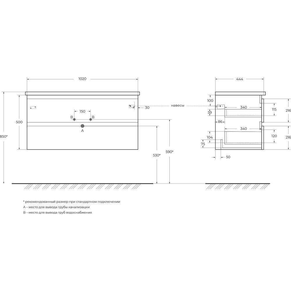 Подвесная тумба BelBagno Albano-Cer 105 измеряет 102x44,4x50 см и оснащена доводчиками для плавного закрывания. Корпус и фасад выполнены из МДФ и покрыты пленкой, защищающей от воздействия влаги. Гарантированная надежность подтверждается 2-летней гарантией.