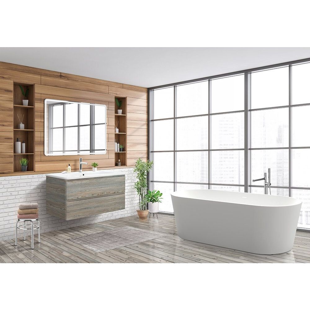 Тумба с раковиной BelBagno Albano-Cer 105 имеет габариты 102x44,4x50 см и выполнена из высококачественного МДФ, покрытого пленкой. Комплект включает в себя удобные ящики, которые оснащены механизмом доводчика для плавного закрывания. Мебельная раковина из фаянса имеет размеры 105,5x46 см и предусмотрена для сифона диаметром 3.2 см. Раковина оснащена встроенным сливом-переливом и имеет одно готовое отверстие под смеситель. Гарантия на тумбу составляет 2 года, а на раковину — 1 год.
