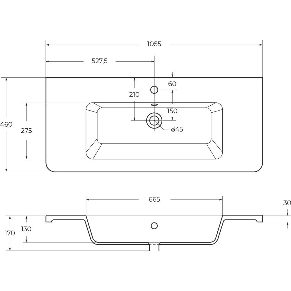 - Мебельная раковина BelBagno Urban 12105-KL из фаянса, размер: 105,5x46 см, с готовым отверстием под смеситель.