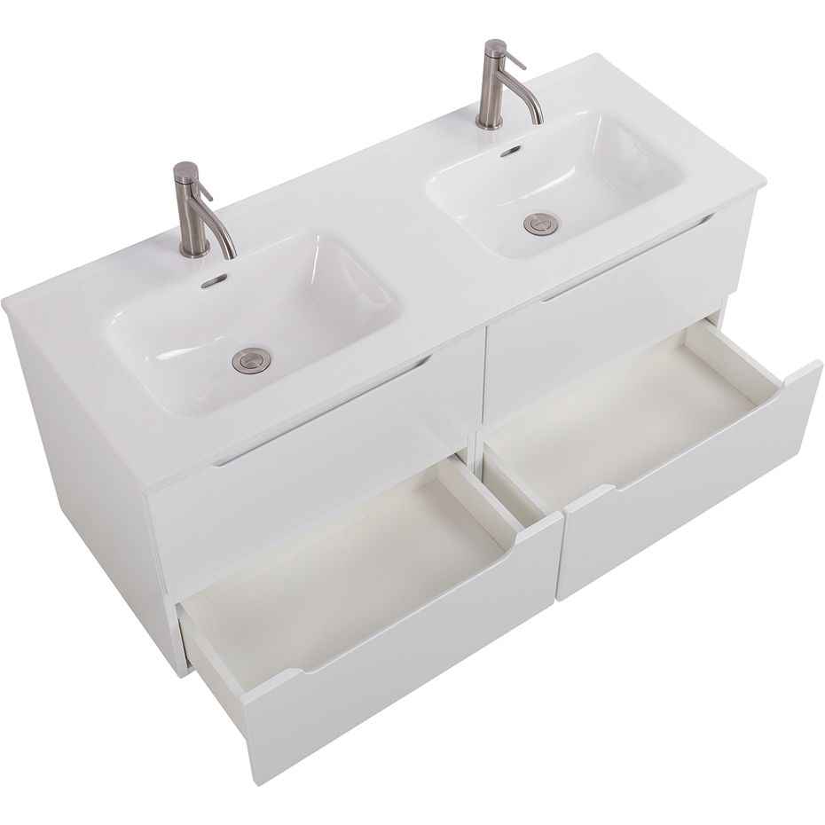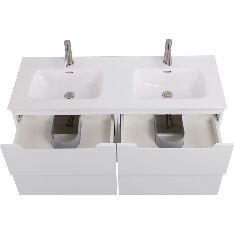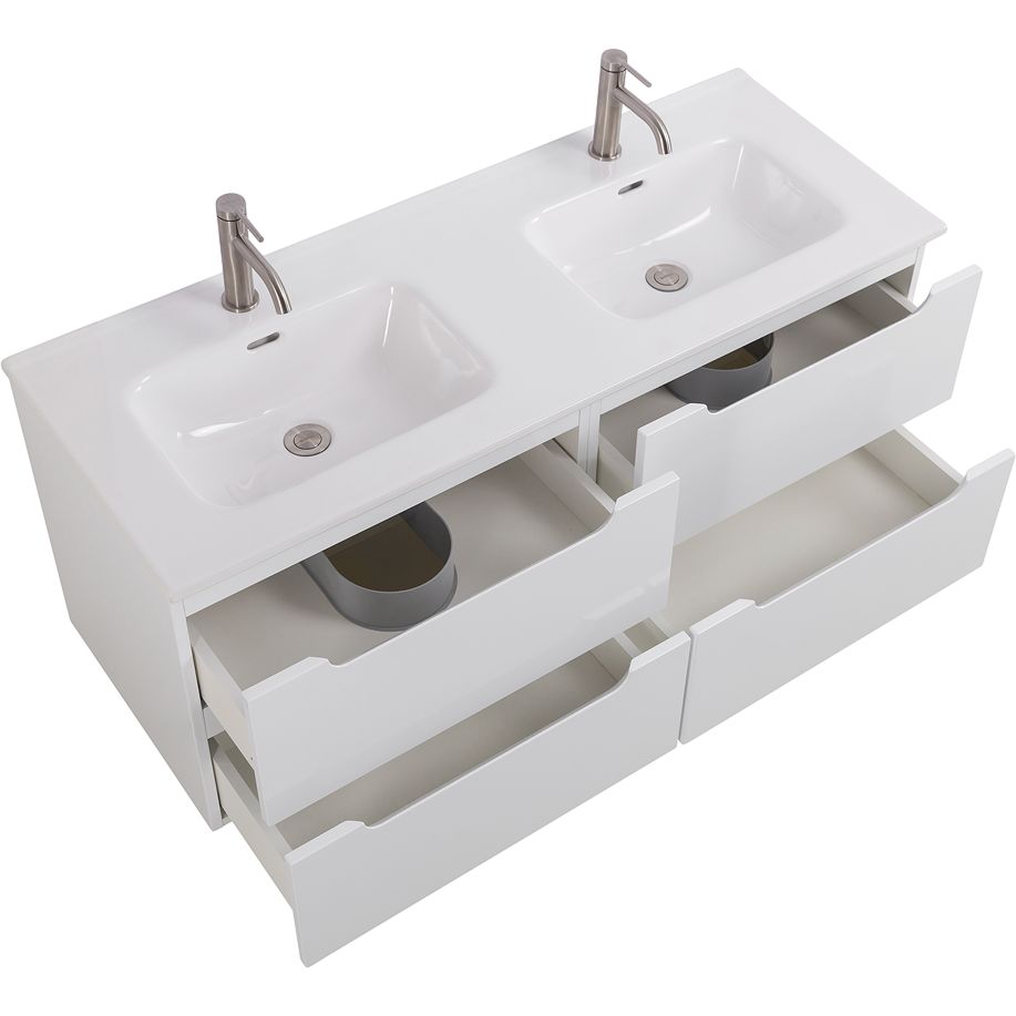 Мебельная раковина BelBagno Etna выполнена из высококачественного фаянса, с габаритами 121x46,5 см. Подходит для сифона диаметром 3.2 см, однако донный клапан и слив-перелив необходимо приобрести отдельно. Раковина имеет два готовых отверстия под смеситель. Тумба из этой коллекции отличается размерами 60x45,5x50 см. Изготовлена из прочного МДФ и покрыта пленкой. Подвесная тумба оснащена ящиками с механизмом доводчика, что обеспечивает плавность закрывания и бережное отношение к мебели. Гарантия на раковину составляет 1 год, на тумбу — 2 года. Оба изделия произведены в Италии.