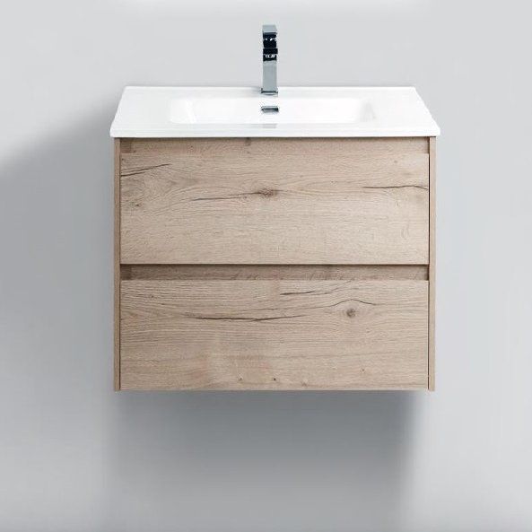 В комплект входит подвесная тумба размером 60x45x50 см с корпусом из ЛДСП и ламинатным покрытием, оснащённая механизмом доводчика для плавного закрывания ящиков, что обеспечивает удобство использования. Также в комплекте раковина из фаянса размером 61x46,5 см, оснащённая встроенным сливом-переливом и отверстием под смеситель. Обратите внимание, что донный клапан приобретается отдельно.