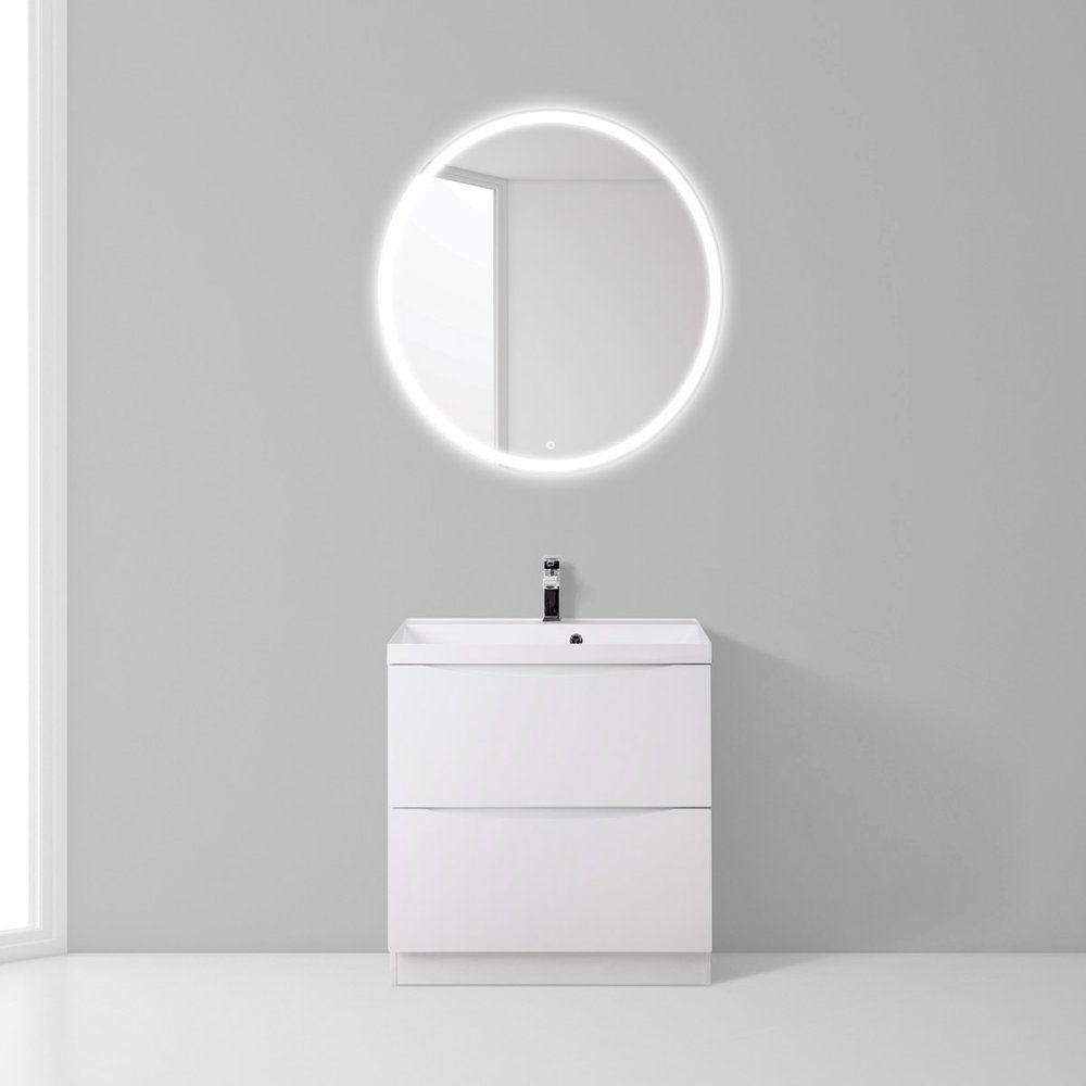 Тумба для комплекта BelBagno Marino 60 bianco lucido имеет габариты 59,6x44,8x80,5 см и выполнена в напольном исполнении, что обеспечивает её стабильность и удобство использования. Она оснащена ящиками с механизмом доводчика, что гарантирует плавное и бесшумное закрывание. Корпус и фасад изготовлены из МДФ с пленочным покрытием, что придаёт мебели прочность и устойчивость к влаге.