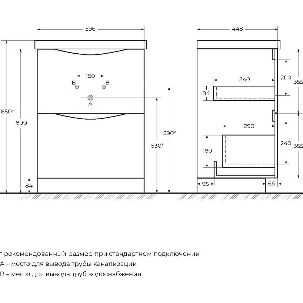 Мебель поставляется в собранном виде, что значительно упрощает процесс установки. При выборе сифона необходимо учитывать конструктивные особенности тумбы с раковиной и подбирать его индивидуально. Обратите внимание, что установка донного клапана не предусмотрена.