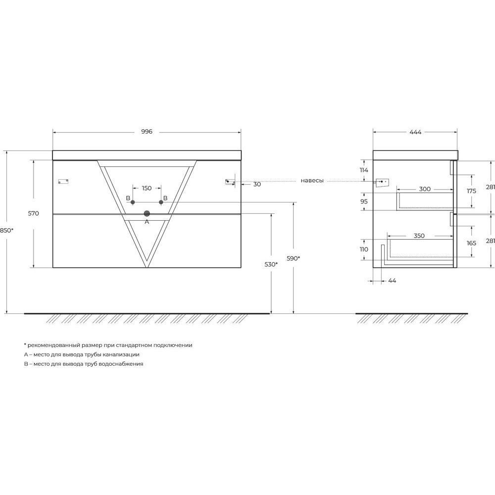 При выборе сифона для раковины необходимо учитывать особые конструктивные особенности этой модели тумбы. Подбор должен осуществляться индивидуально, исходя из параметров изделия, чтобы обеспечить корректную установку и эксплуатацию. Установка донного клапана не предусмотрена, учтите это при выборе смесителя и аксессуаров.