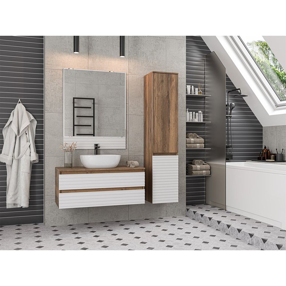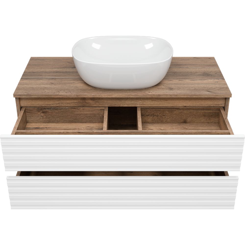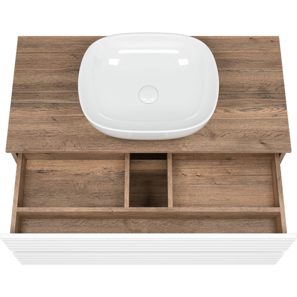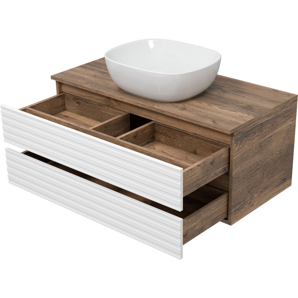 Представляем вашему вниманию изысканную тумбу с раковиной Brevita Dakota 100 в изящных оттенках дуб галифакс олово и белый. Эта подвесная мебель для ванной комнаты не только станет стильным дополнением интерьера, но и обеспечит практичность в повседневной жизни. Brevita Dakota отличается высокой стойкостью к влаге и легкостью в уходе, что делает ее идеальным выбором для современных ванных комнат. Тумба с двумя удобными выдвижными ящиками, установленными на скрытых направляющих с доводчиками, предлагает просторное и организованное хранение средств личной гигиены.