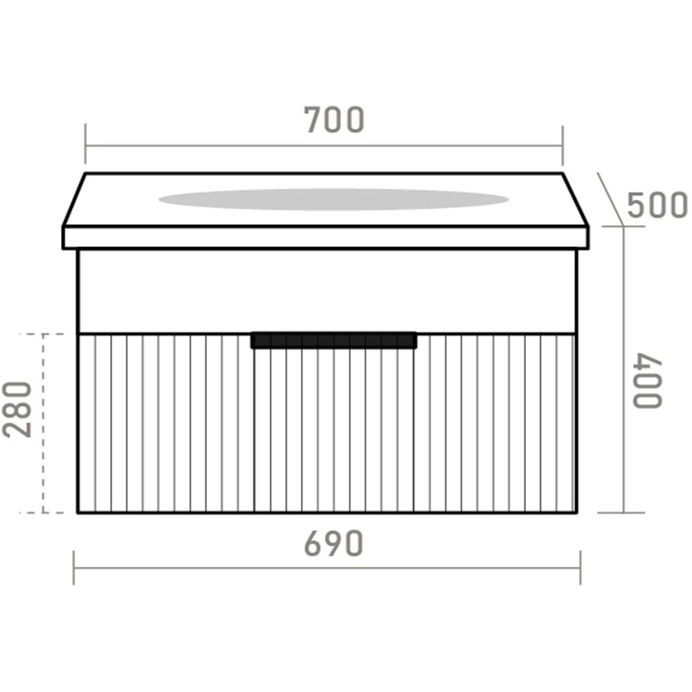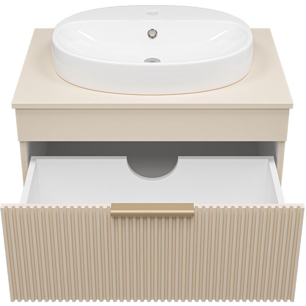 Тумба Brevita Enfida 70 имеет размеры 70x50x40 см и выполнена в подвесном формате, что экономит пространство. Корпус изготовлен из ЛДСП с эмалево-ламинированным покрытием, а фасад — из МДФ с эмалевым покрытием. Золотая фурнитура добавляет роскоши. Раковина DIWO, овальной формы и размерами 62x47 см, выполнена из фаянса. Включает встроенный слив-перелив, одно отверстие под смеситель и предусмотрена для сифона диаметром 3.2 см. Гарантия на тумбу составляет 1 год, на раковину — 5 лет.