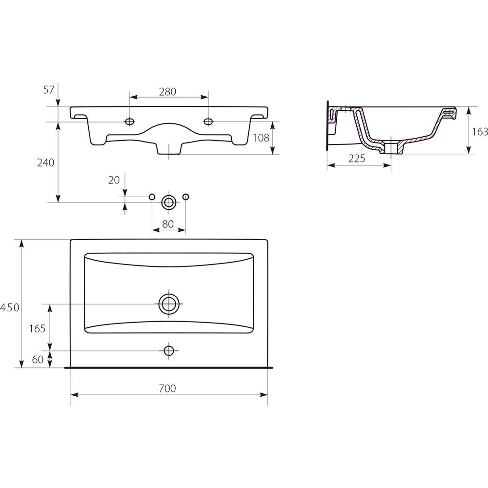- Раковина Cersanit Como 70 белая: Габариты — 70x45 см. Изготовлена из фарфора с глянцевой поверхностью. Встроенный слив-перелив и отверстие под смеситель, диаметр отверстия для сифона — 3.2 см. Донный клапан приобретается отдельно. Гарантия на раковину составляет 10 лет.