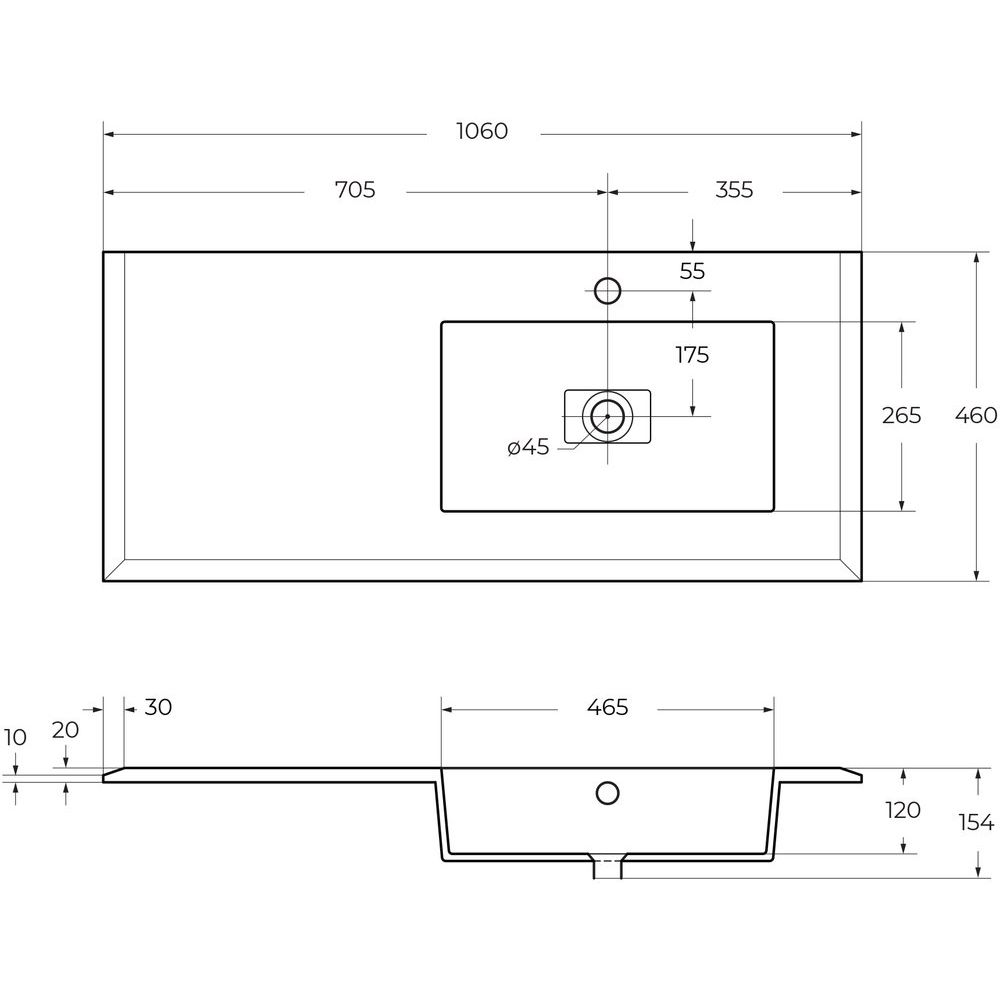 Мебельная раковина Cezares Bellagio R, с размерами 106x46 см, изготовлена из прочного искусственного камня. Декоративная накладка на слив добавляет изысканность внешнему виду. Раковина адаптирована под смеситель с одним отверстием, диаметр сифона — 3.2 см. Гарантия — 1 год, также разработана и произведена в Италии.
