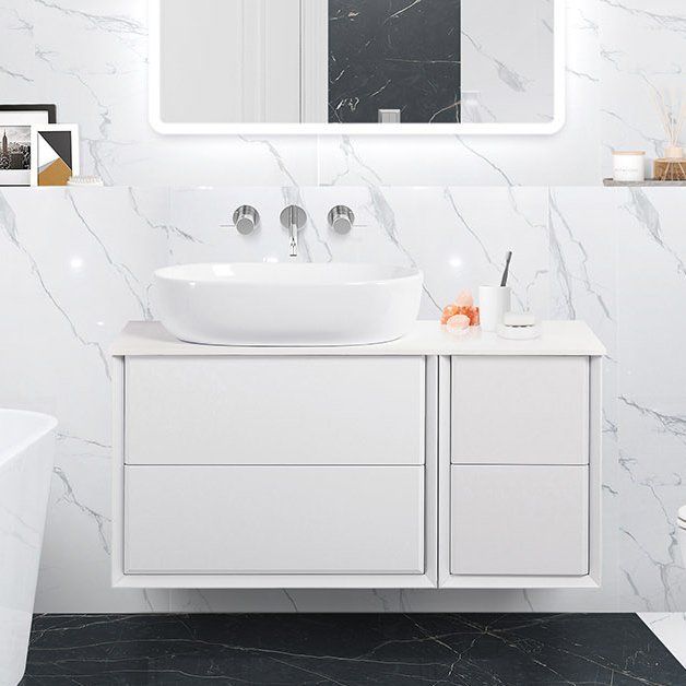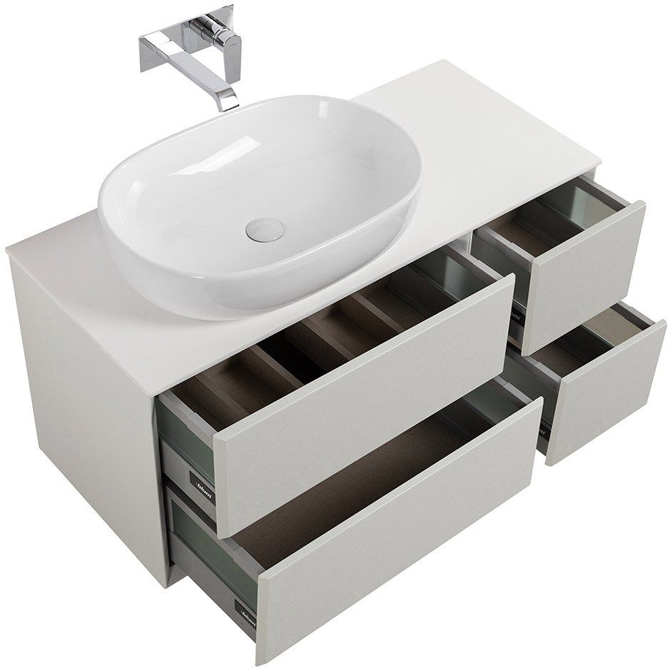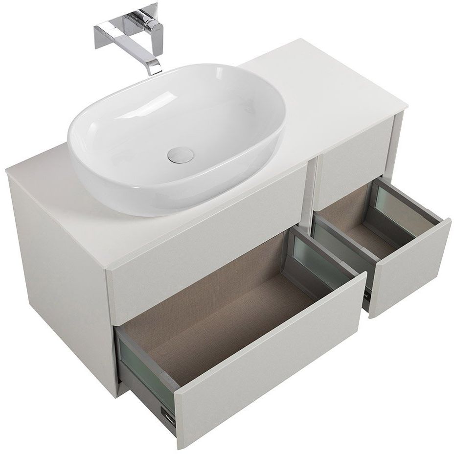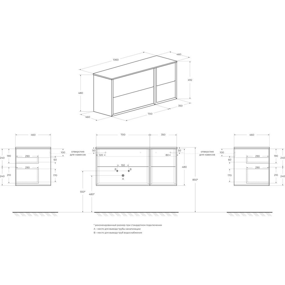 Обратите внимание, что мебель поставляется в собранном виде, что упрощает установку. При выборе сифона учитывайте конструктивные особенности тумбы с раковиной и подбирайте его индивидуально. Столешница не имеет отверстий под смеситель и раковину, что предоставляет свободу в настройке именно под ваш проект.