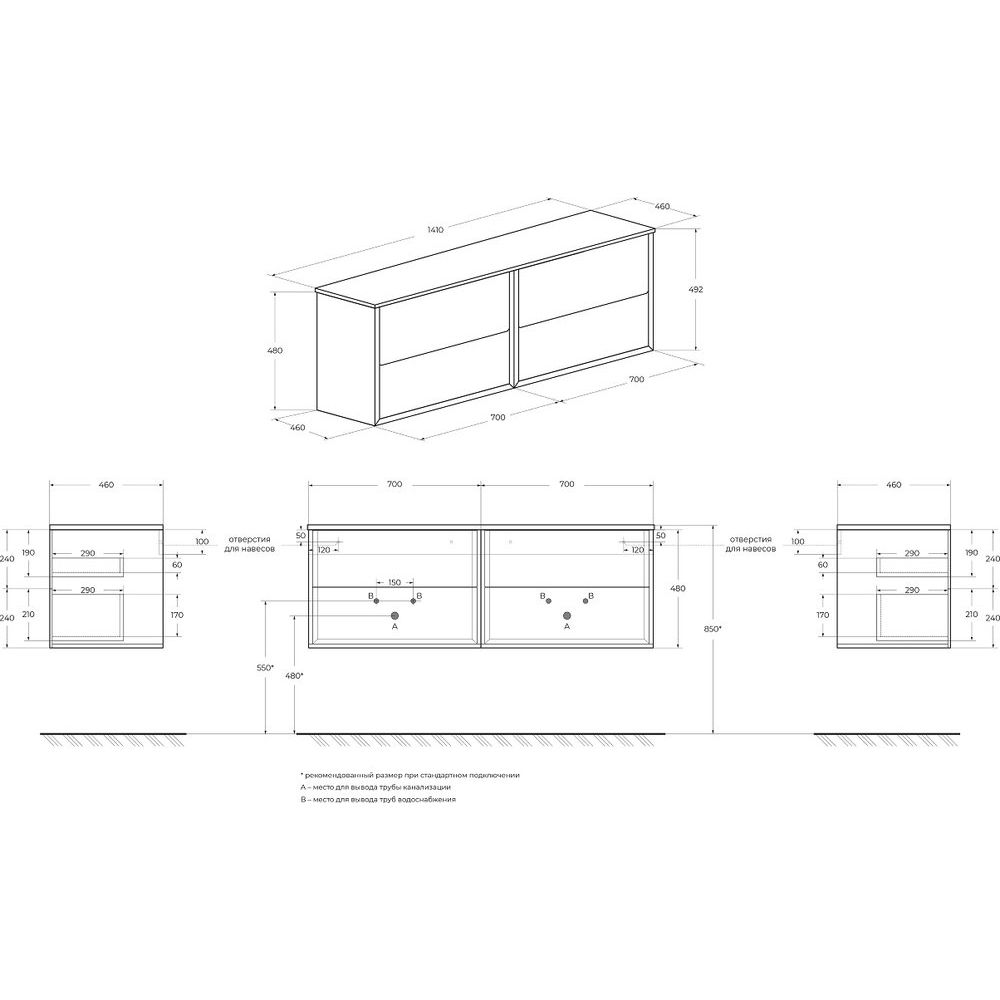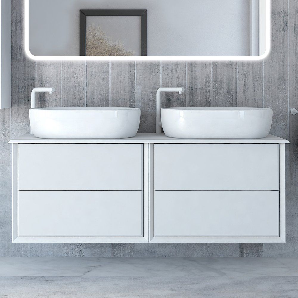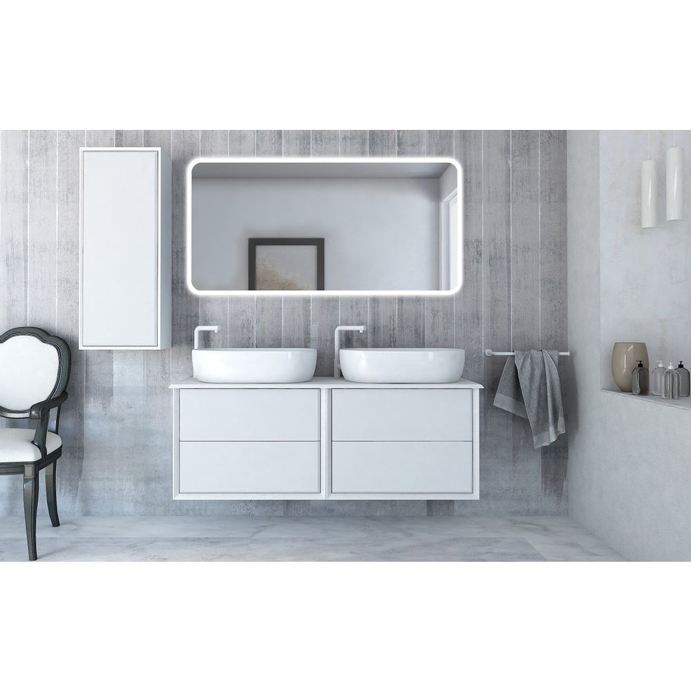 Тумба Cezares Bellagio 70 имеет размеры 70x46x48 см и выполнена в цвете bianco opaco. Подвесная конструкция экономит пространство, механизмы доводчиков мягко закрывают ящики, а нажимной механизм добавляет удобства. Корпус и фасад произведены из МДФ, отделанных пленкой, что обеспечивает устойчивость к воздействию влаги. Мебельная раковина Cezares Bellagio размером 60x42 см сделана из высококачественного фарфора и имеет отверстие для сифона диаметром 3.2 см, хотя донный клапан приобретается отдельно. Столешница из искусственного камня размером 141x46x1.2 см идет без отверстий для смесителя, позволяя самостоятельно выбрать место установки.