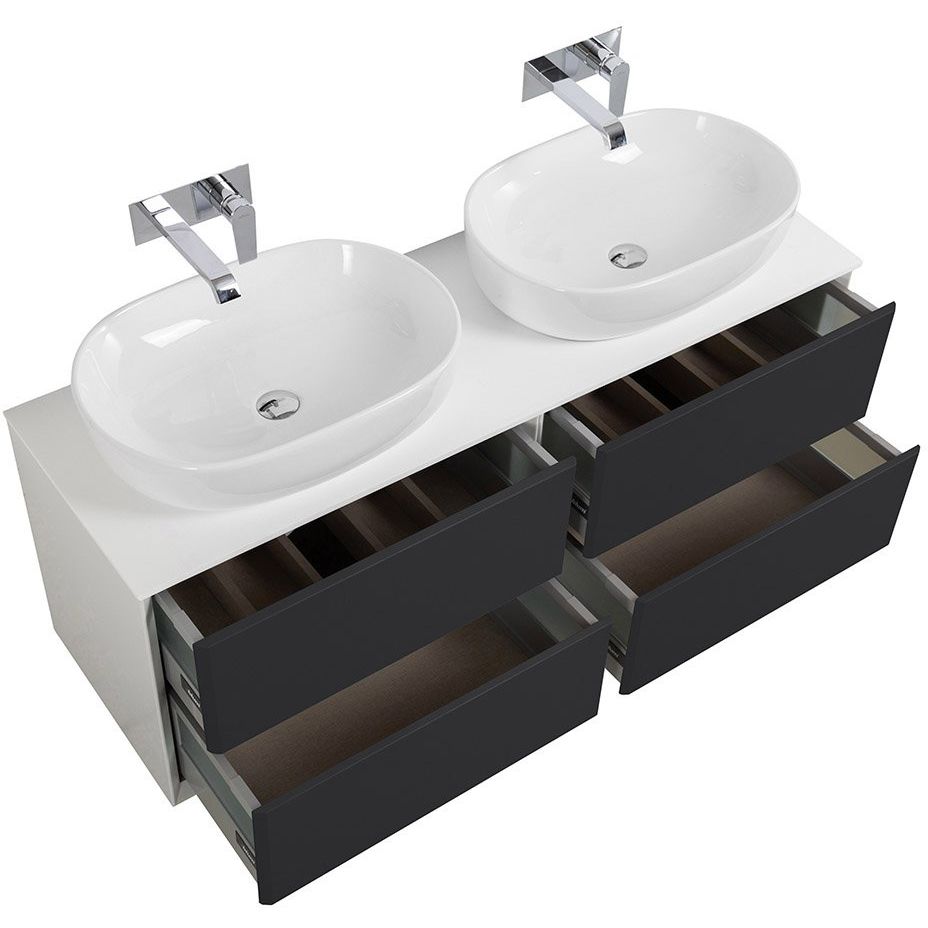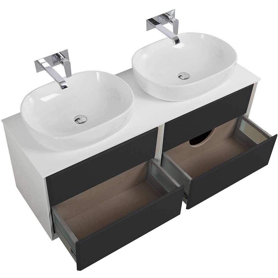 Важно помнить, что мебель поставляется в собранном виде. При выборе сифона следует учитывать конструктивные особенности тумбы и подбирать его индивидуально. Обратите внимание, что столешница не имеет отверстий под смеситель или умывальник, что позволяет вам самостоятельно выбрать их расположение в процессе монтажных работ.