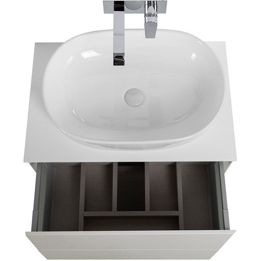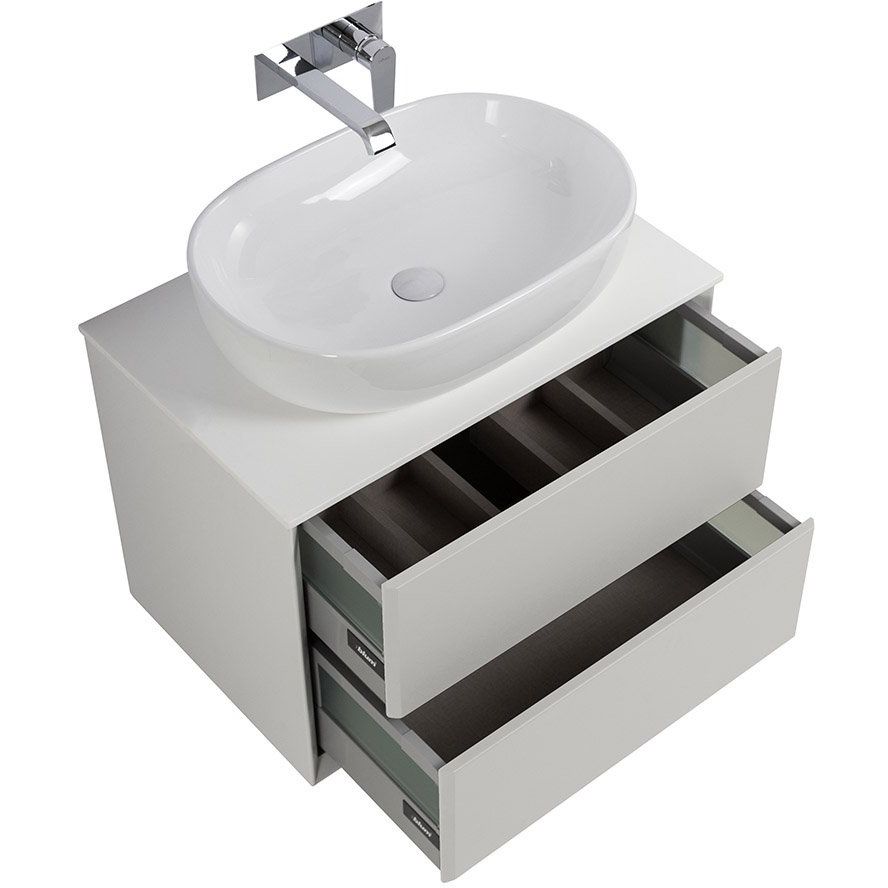 Тумба для комплекта Cezares Bellagio 70 имеет размеры 70x46x48 см и выполнена в цвете bianco opaco. Она изготовлена из МДФ с пленочным покрытием, что гарантирует стойкость к влаге и легкость в уходе. Кроме того, тумба оснащена механизмом доводчика и нажимным механизмом открывания для удобства использования. Мебельная раковина Cezares Bellagio 50179 диаметром 60x42 см выполнена из фарфора и предназначена для сифона 3,2 см. Столешница размером 71x46x1,6 см выполнена из искусственного мрамора, что придаёт ей особую прочность и стильный внешний вид.
