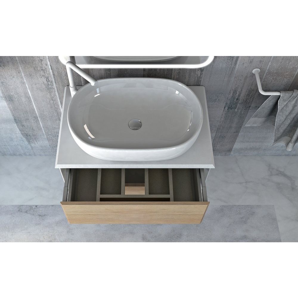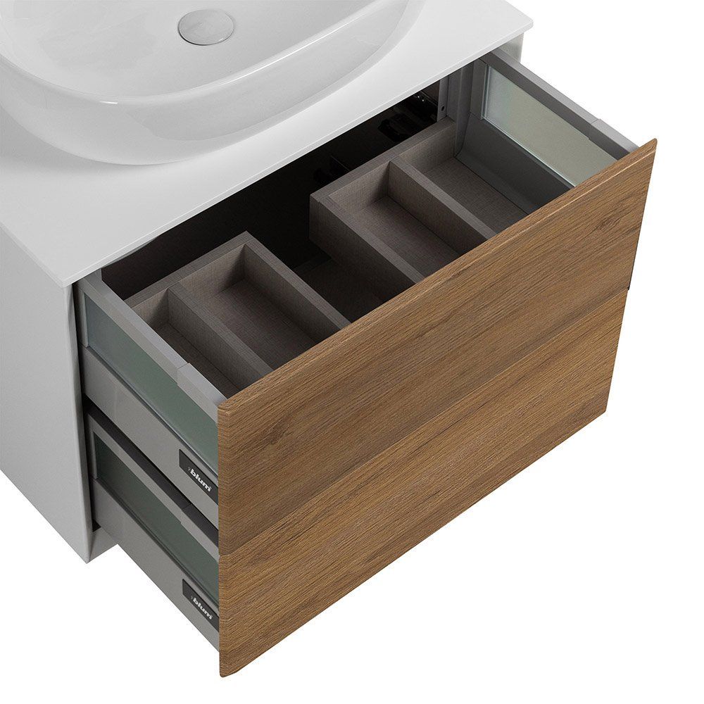 Мебель для ванной комнаты от бренда Cezares — это всегда про стиль и качество. Тумба с раковиной Cezares Bellagio 70 и столешницей цвета rovere tabacco воплощает в себе итальянскую элегантность и функциональность. Эта подвесная конструкция легко впишется в современный интерьер, делая вашу ванную комнату не только практичной, но и эстетически привлекательной. Благодаря механизму доводчика, ящики закрываются плавно и практически бесшумно, а нажимной механизм открывания добавляет комфорта в ежедневное использование.