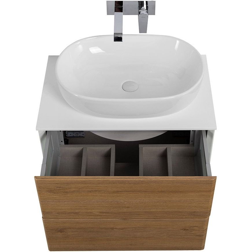 Комплект включает в себя тумбу Cezares Bellagio 70 с размерами 70x46x48 см, выполненную в оттенке rovere tabacco. Конструкция предусматривает использование высококачественных материалов с прочным пленочным покрытием. Ящики оснащены доводчиками и нажимными механизмами открывания. Не менее изысканная мебельная раковина Bellagio размером 60x42 см из фарфора требует донный клапан и сифон с диаметром 3.2 см, которые приобретаются отдельно. Столешница из искусственного мрамора без готовых отверстий под смеситель имеет размеры 71x46x1.6 см и выполнена в белоснежном цвете bianco opaco. Гарантия на все компоненты предоставляет Cezares, которая уверена в своем качестве на 1 год. Все элементы произведены в Италии, что говорит само за себя.
