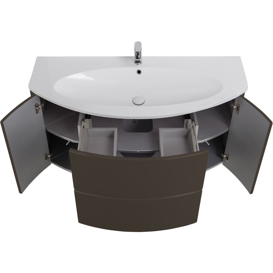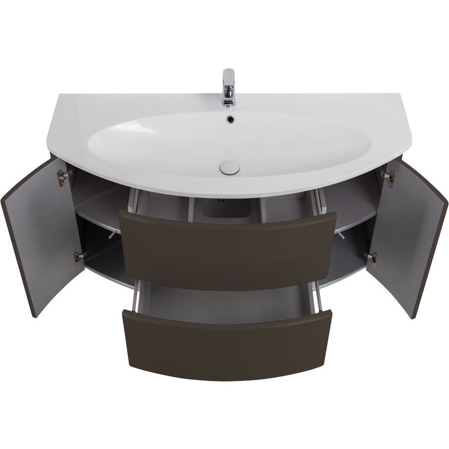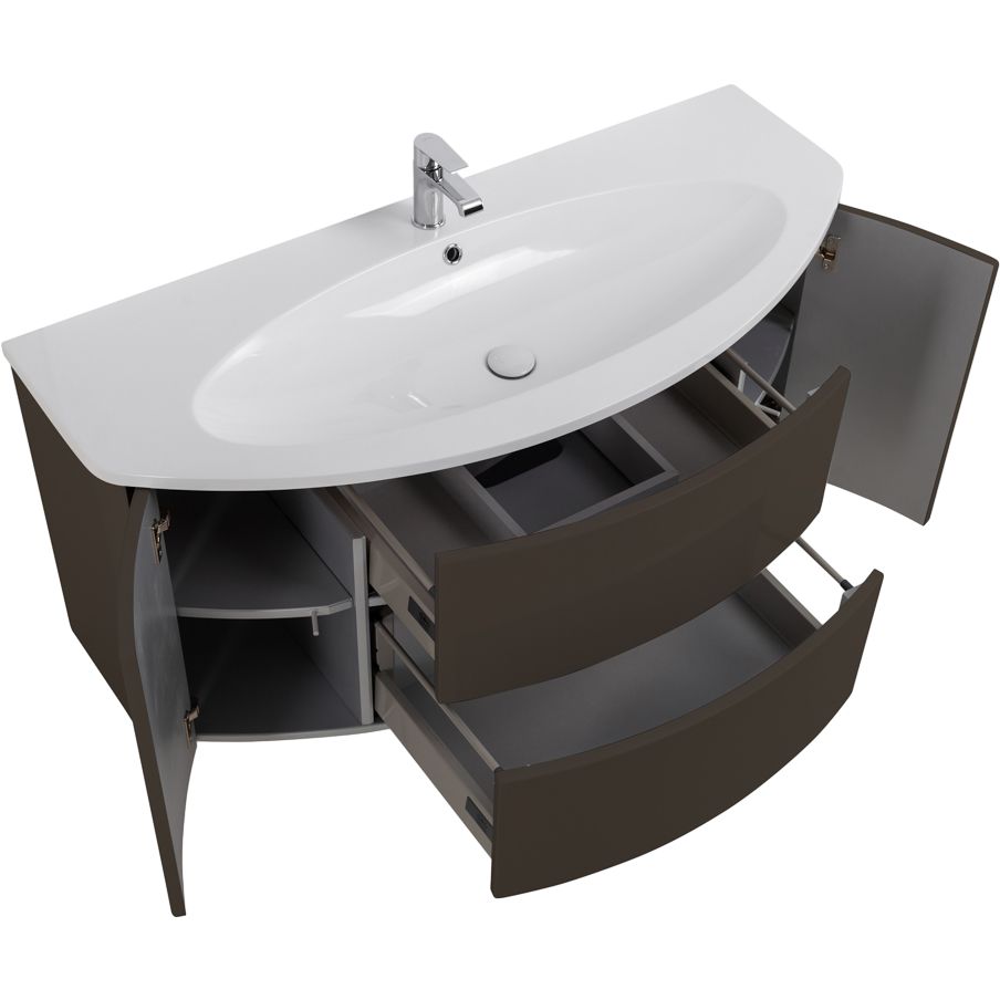 В комплект также входит раковина из искусственного камня размером 122,5х51,5 см. Она имеет одно отверстие для смесителя и предназначена для сифона диаметром 3.2 см. Помните, что донный клапан и слив-перелив необходимо приобретать отдельно.