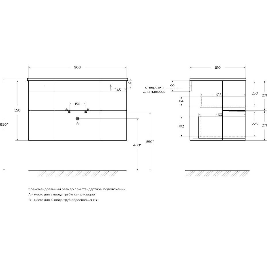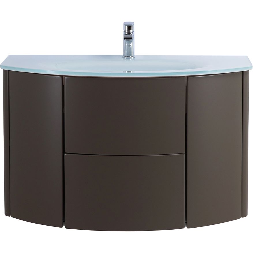 Тумба для комплекта Cezares Eden 90 grigio talpa opaco имеет размеры 90x51x55 см и предназначена для подвесного монтажа. В ее конструкции использован высококачественный МДФ, покрытый пленкой, что обеспечивает устойчивость к влаге и термическим воздействиям. Модель оснащена ящиками с нажимным механизмом открывания и плавным закрыванием, благодаря встроенным доводчикам. Раковина Cezares Eden 82399 Extra Light выполнена из прочного стекла и имеет размеры 91x52 см. Она оснащена отверстием под смеситель и рассчитана на сифон диаметром 3.2 см. Гарантия на комплект составляет 1 год, подтверждая качество изделия.