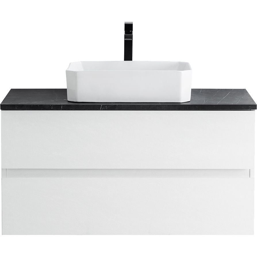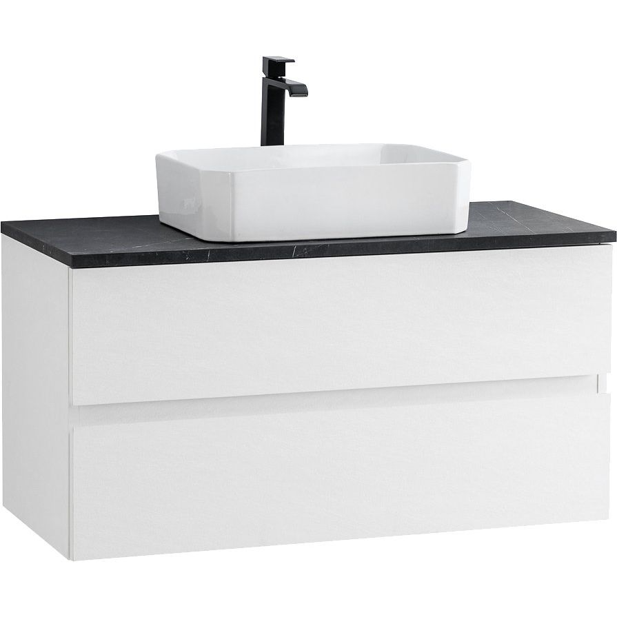 Тумба Cezares Molveno шириной 99,7 см, глубиной 46 см и высотой 50 см выполнена из ламинированных ЛДСП, что придает ей прочность и устойчивость к влаге. Оснащена ящиками и современным механизмом доводчика для плавного закрытия. Раковина BelBagno BB1386, изготовленная из высококачественного фаянса, имеет размеры 49x38 см. Столешница BelBagno KEP-100-MNO из керамогранита в цвете черный "marmo nero opaco" с одним готовым отверстием для смесителя, это добавляет изысканности и облегчает установку.