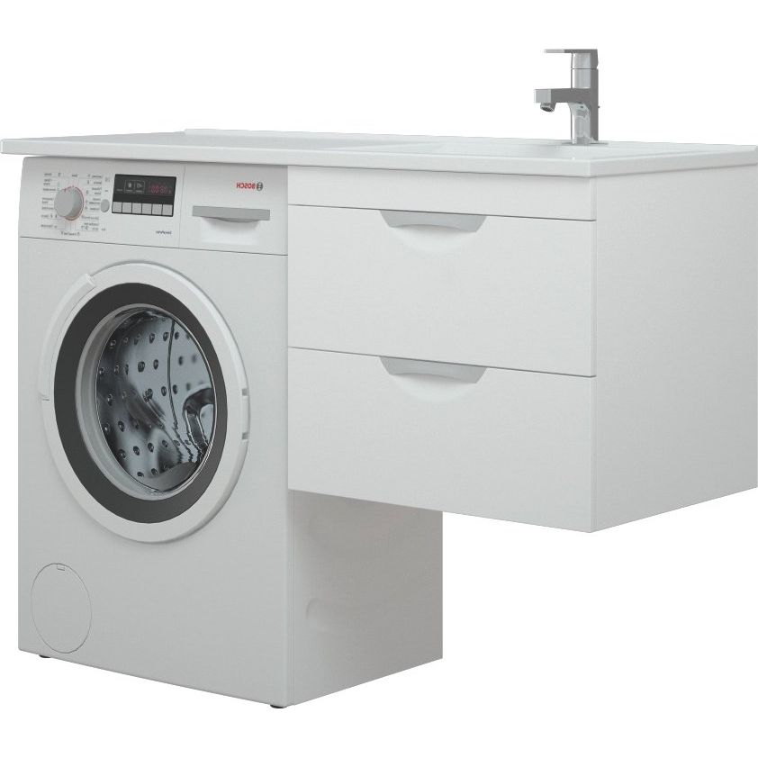 - Подвесная конструкция позволяет сэкономить пространство и установить стиральную машину.