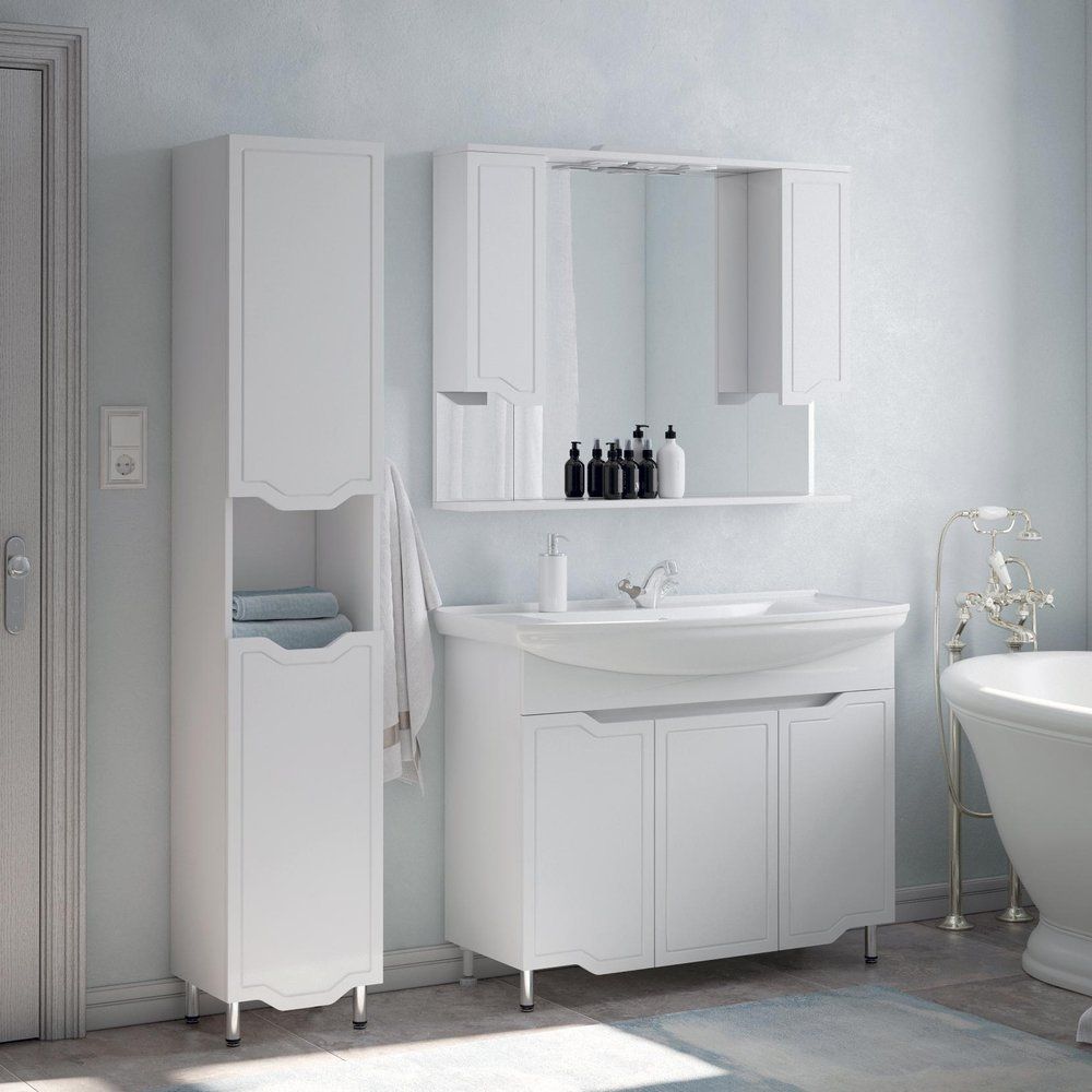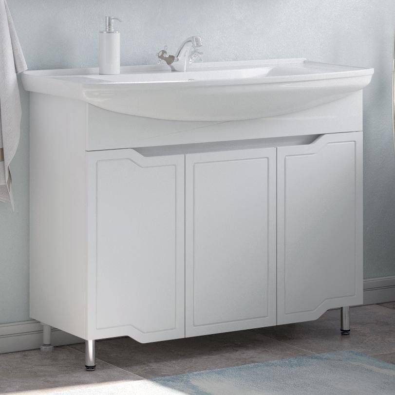 Тумба с раковиной Corozo Мирра 105 белая — это изысканная и функциональная мебель для ванной комнаты, где стиль и практичность гармонично сочетаются в одном изделии. Этот комплект от известного бренда Corozo сочетает в себе элегантный дизайн и высокое качество, дополненное эргономичной раковиной Kirovit Элеганс 105, создавая идеальное сочетание удобства и эстетики в вашем интерьере.