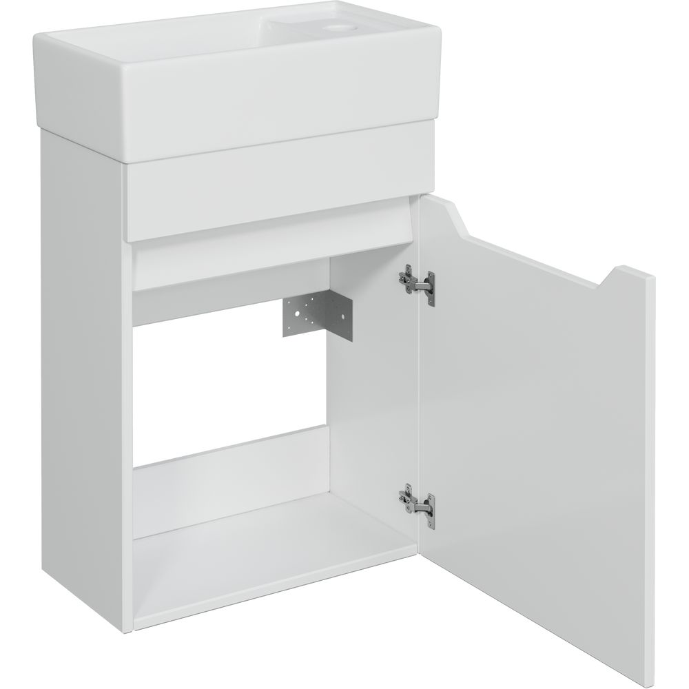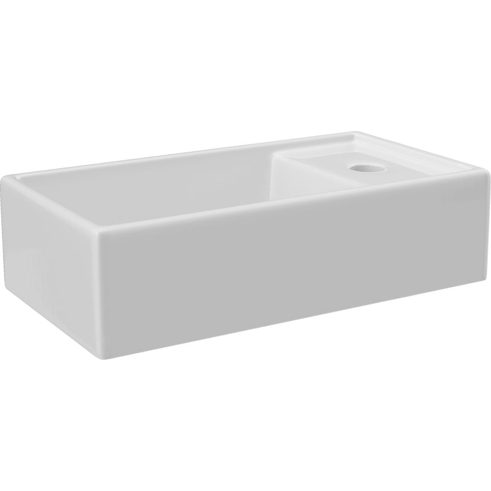 Комплектуется пластиковым сифоном для раковины с боковым выпуском и мокрым затвором, который предотвратит распространение неприятных запахов. Сифон легко очищается благодаря съемной конструкции и имеет антикоррозийное покрытие. Рукомойник, выполненный из фаянса, также подходит для данной системы и имеет готовое отверстие под смеситель.