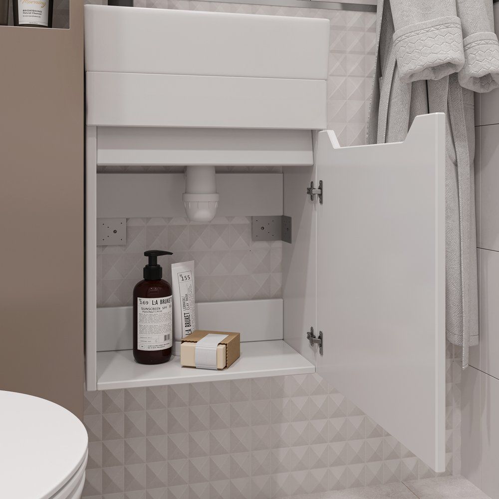 Тумба для вашего удобства исполнена с размерами 39,2x21x50 см и имеет подвесную конструкцию, что позволяет экономить пространство и упрощает уборку в помещении. Корпус выполнен из качественного ЛДСП с пленочным покрытием, а фасад — из МДФ, тоже с пленочной обработкой, что обеспечивает отличную защиту от влаги и механических повреждений. Функциональность достигается за счет предусмотренных дверок, созданных для удобного хранения ваших принадлежностей.