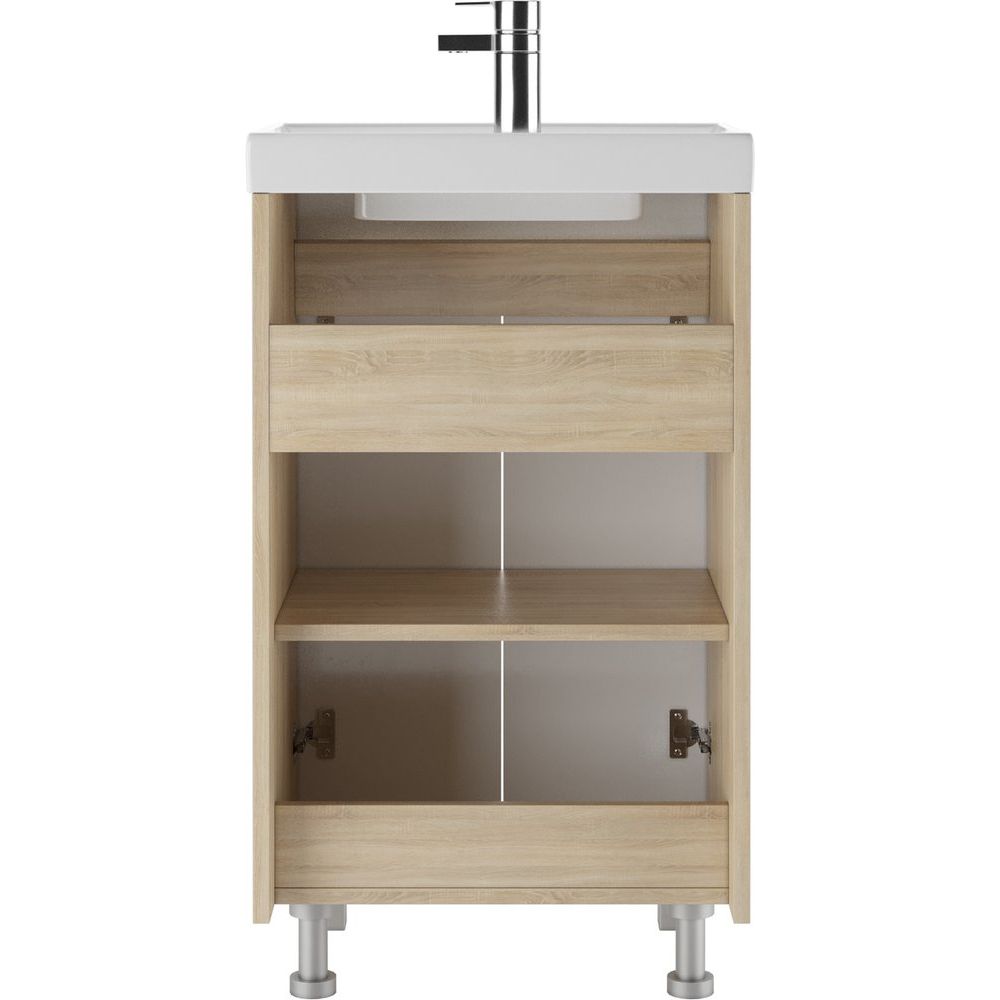 Тумба с раковиной DIWO Архангельск 50 дуб сонома — это не только эстетичное и стильное дополнение вашей ванной комнаты, но и практичное решение для хранения. Элегантная отделка “дуб сонома” добавляет натурального тепла интерьеру, а компактные размеры идеально подходят для современных квартир. Благодаря высококачественным материалам и современным технологиям производства мебель обеспечит долговечное и комфортное использование.