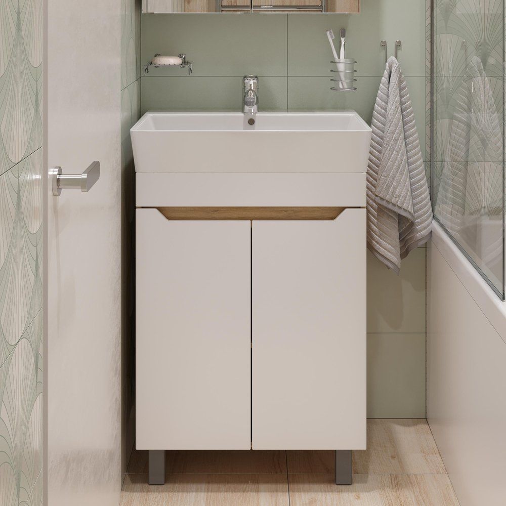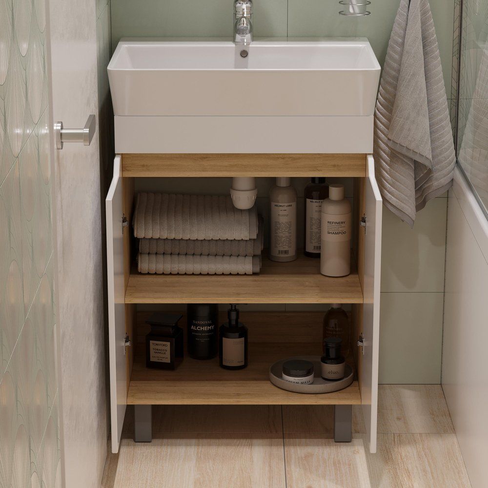 Тумба с раковиной DIWO Архангельск 60 в цвете дуб сонома — это идеальное решение для вашей ванной комнаты, где элегантность сочетается с функциональностью. Современный дизайн не оставляет равнодушными, а качество материалов гарантирует долгий срок службы. В комплекте с бутылочным сифоном, эта тумба обеспечит удобное и надежное использование каждый день.