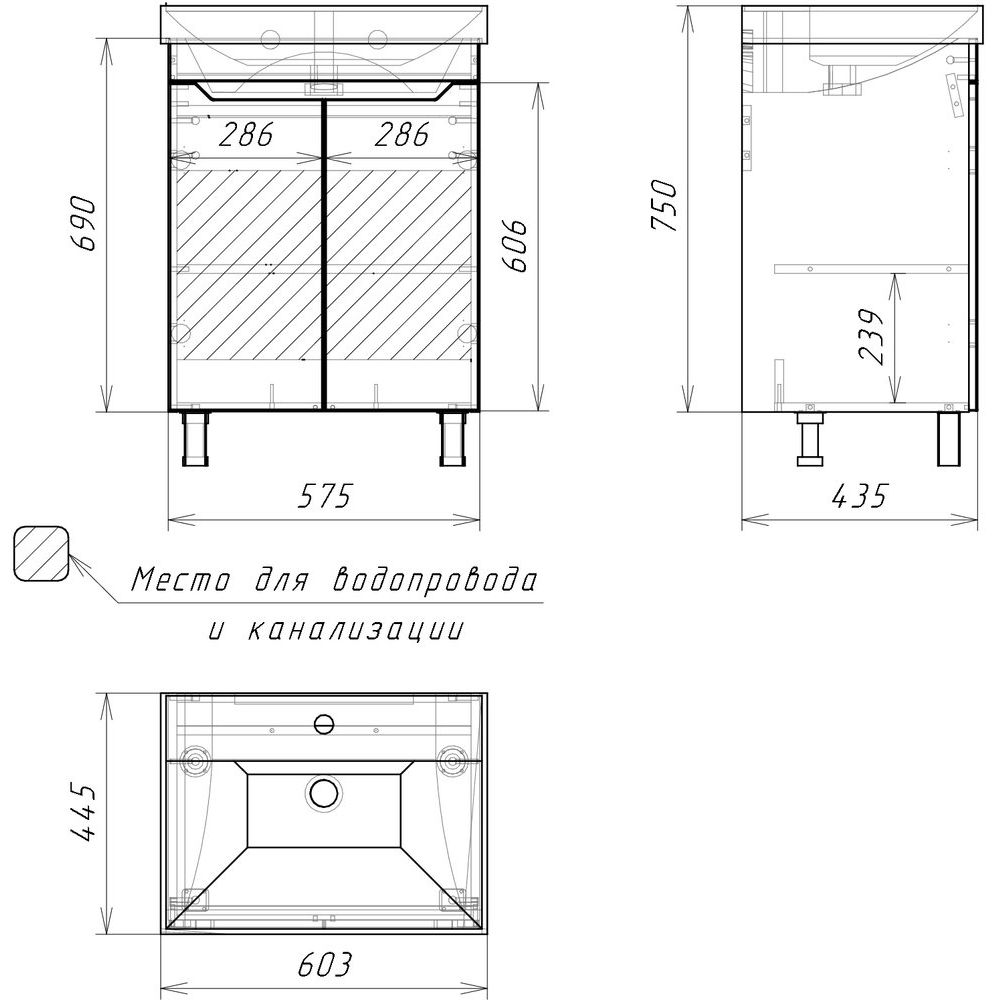 Тумба "DIWO Архангельск 60": габариты 57,5x43,5x79 см, напольная установка, корпус из ЛДСП с пленочным покрытием, фасад из МДФ, несъемные полки, дверцы для удобства доступа. Гарантия — 1 год. Производство — Россия.