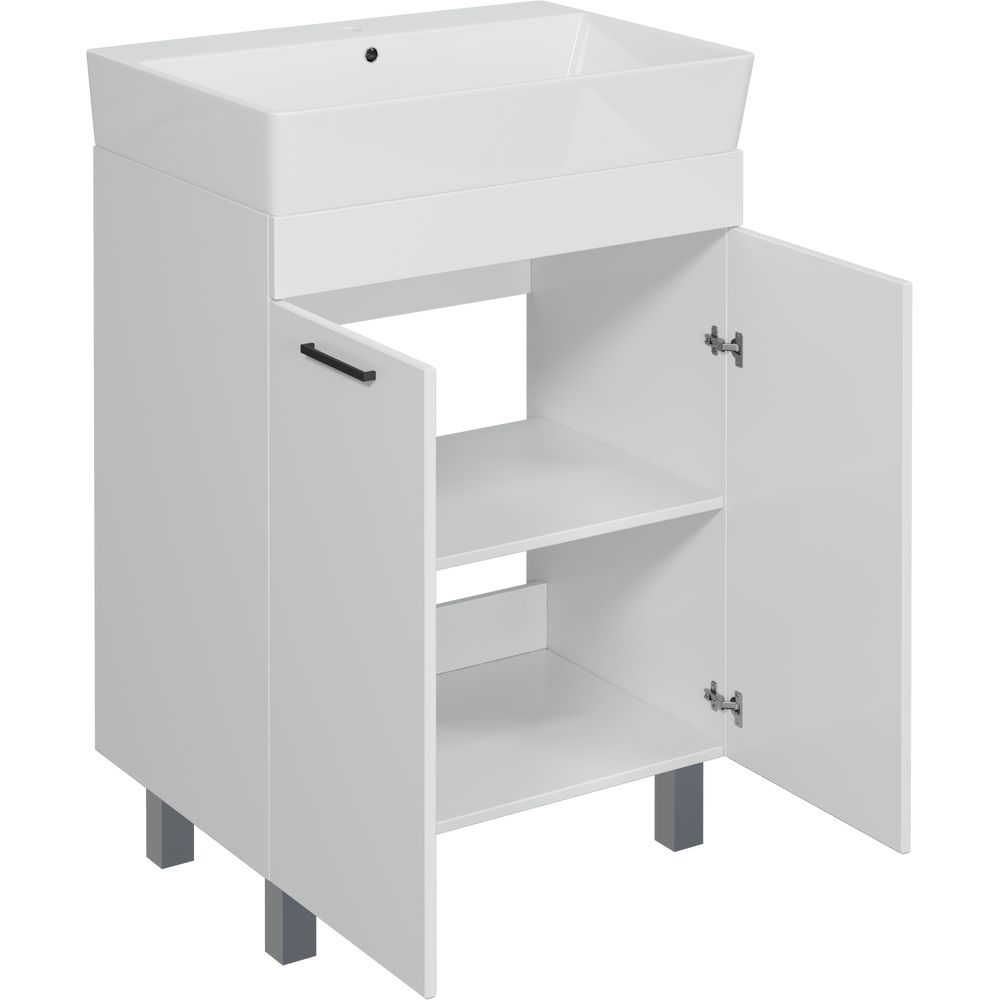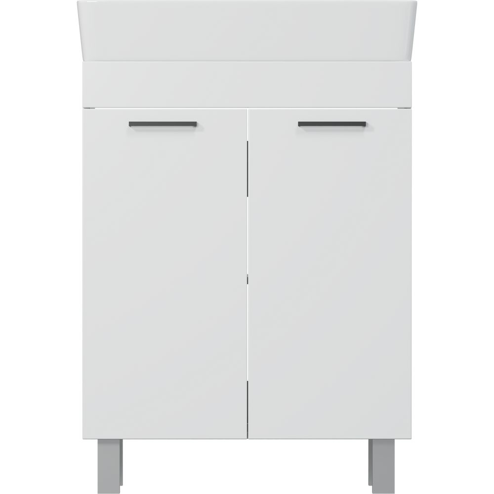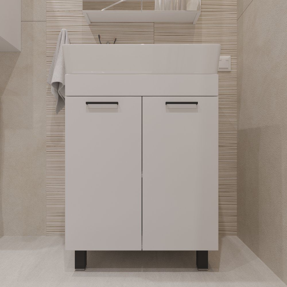 Тумба для комплекта DIWO Брянск 60 обладает габаритами 57,5x43,5x79 см и имеет напольную установку. Изготовленная из ЛДСП с пленочным покрытием, она обладает фасадом из МДФ с аналогичной отделкой. Черная фурнитура гармонично сочетается с белым дизайном, придавая мебели стильный вид. Дверки тумбы скрывают съемные внутренние полки, предлагая дополнительное место для хранения. Изделие производится в России и сопровождается гарантией на 1 год.