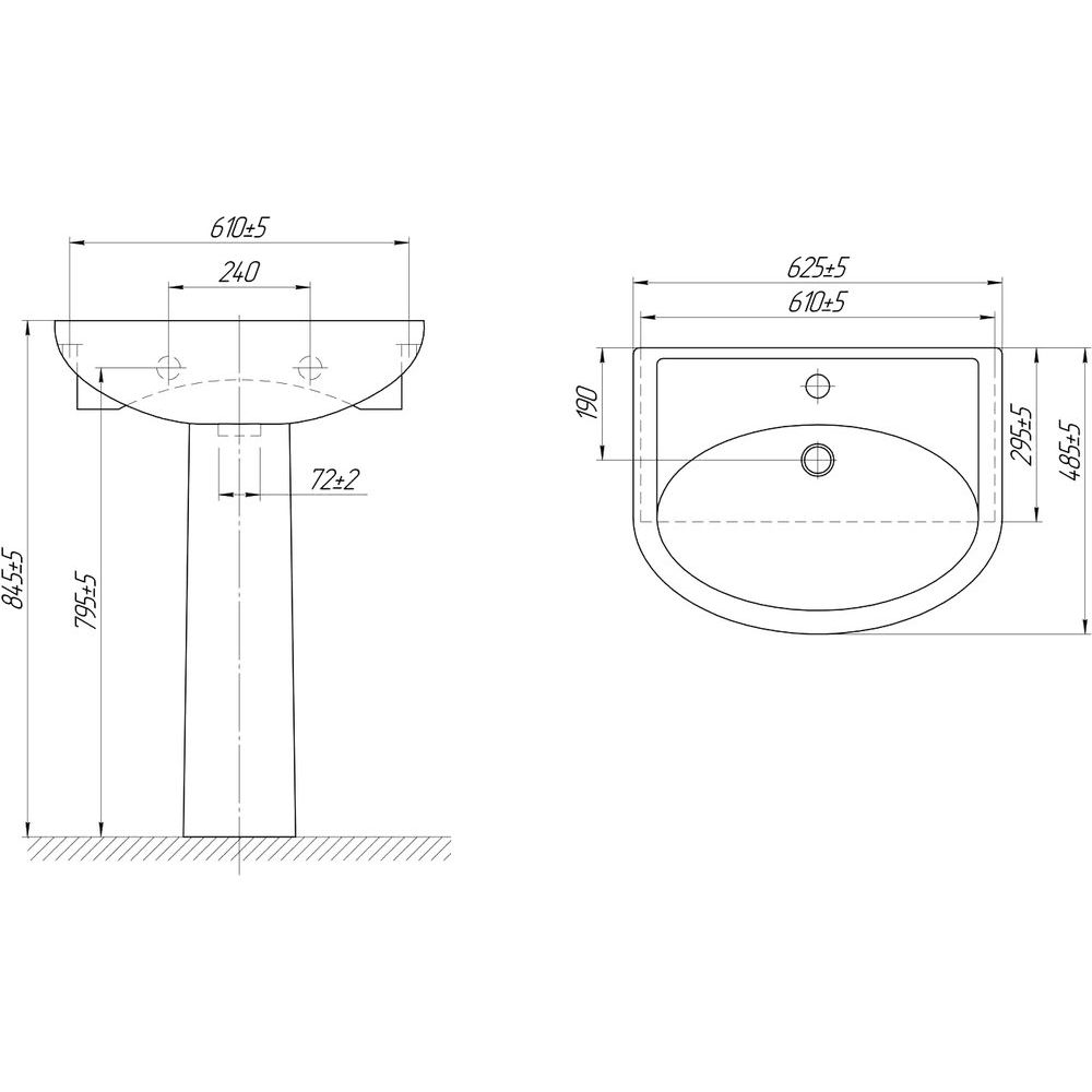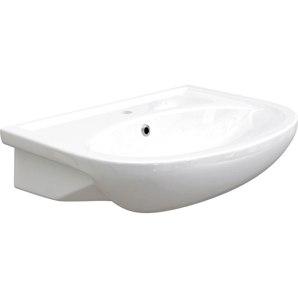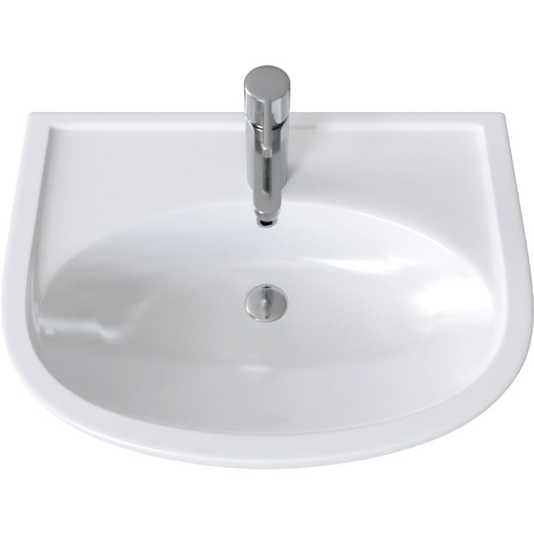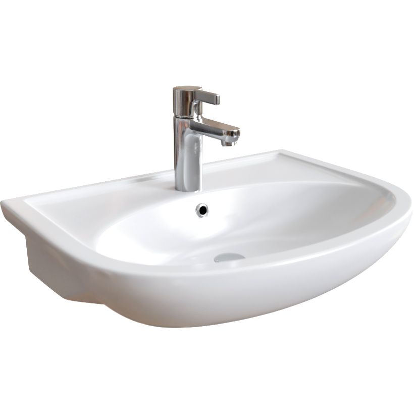 Раковина DIWO Кострома изготовлена из прочного фаянса и имеет размеры 62,5x48,5 см. Она представлена вместе со встроенным сливом-переливом и готовым отверстием под смеситель. Дополнительно необходимо приобрести донный клапан.