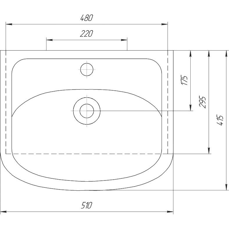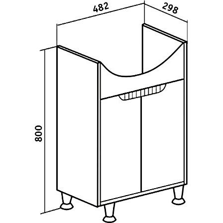 В комплекте идет мебельная раковина DIWO Уют 50 — фаянсовая с размерами 51x41,5 см. Она оснащена встроенным сливом-переливом и одним готовым отверстием для смесителя, однако донный клапан нужно приобрести дополнительно. Раковина подразумевает использование сифона, который также включен в комплект.
