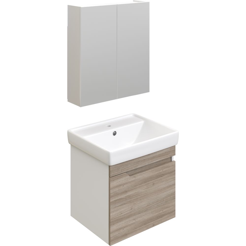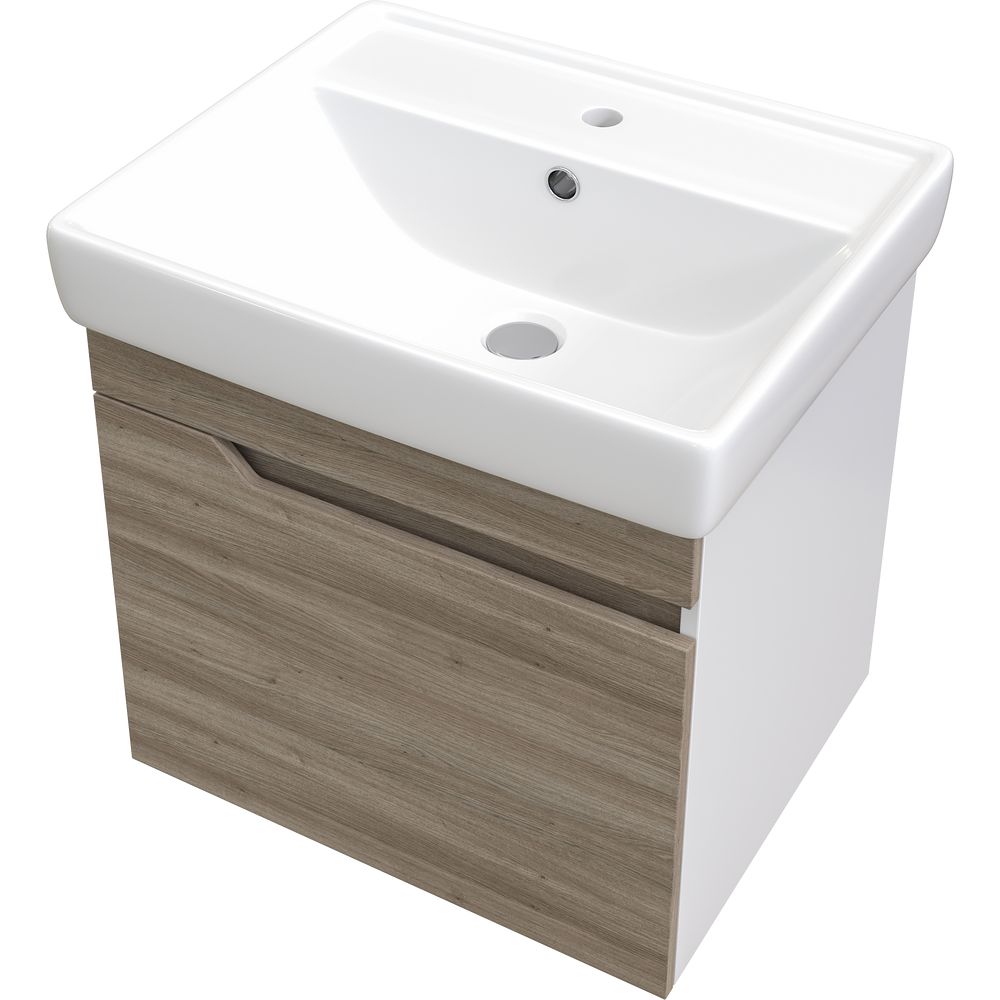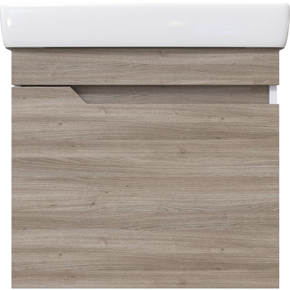 Тумба DIWO Воронеж 50 имеет размеры 46,6x38,2x41,8 см и изготовлена из прочного ДСП, покрытого ламинатом. Ширина и глубина раковины составляют 50x41,3 см, она выполнена из фаянса и снабжена встроенным сливом-переливом. Для подключения сифона предусмотрен диаметр 3.2 см.