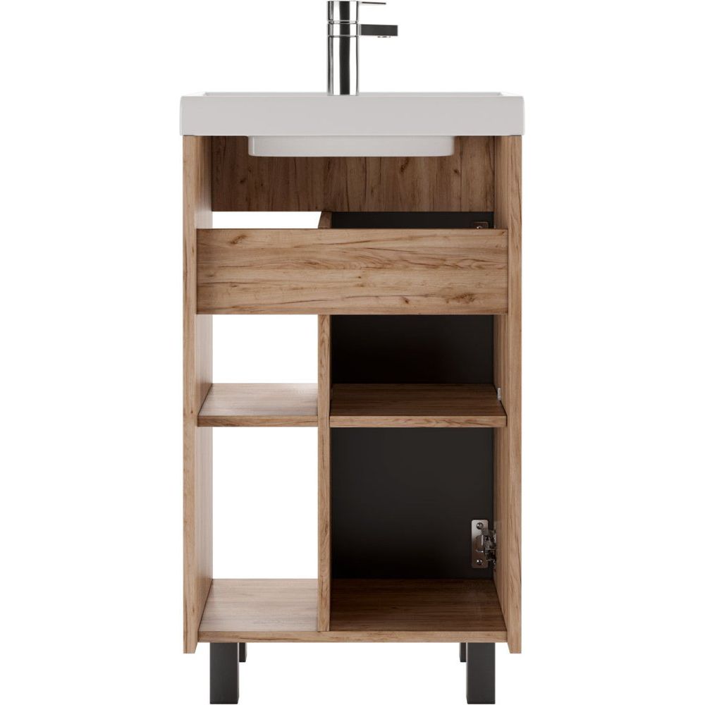 Тумба с раковиной Домино Craft 50 в благородных оттенках дуб вотан и графита — это не просто функциональная мебель для ванной комнаты, а настоящее произведение искусства современного интерьера. Благодаря своему утонченному дизайну и практичности, она идеально впишется в любой стиль, создавая атмосферу уюта и гармонии. Ваши ежедневные ритуалы станут более удобными и приятными благодаря качественной сантехнике и мебели от бренда Домино.