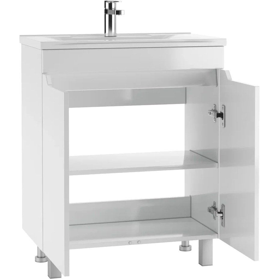 Тумба Домино Optima 65 имеет компактные габариты — 63 см в ширину, 44,1 см в глубину и 82 см в высоту, благодаря чему легко разместится даже в небольшой ванной комнате. Корпус выполнен из ламинированного древесно-стружечного плита с защитным эмалевым покрытием, а фасады — из традиционного МДФ, также покрытого эмалью, что придаёт изделию устойчивость к влаге. Включает надежные дверки для простоты хранения. Гарантия на тумбу составляет 2 года.