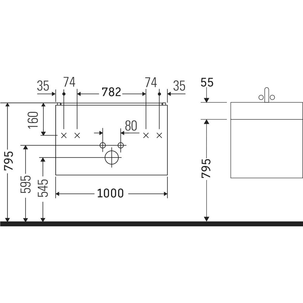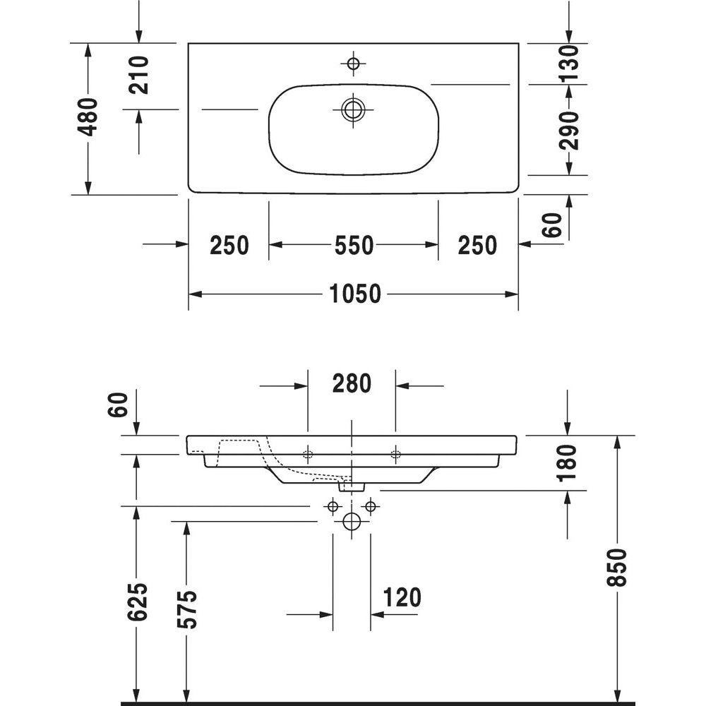 Комплект состоит из подвесной тумбы для раковины и самой раковины. Тумба с размерами 100x45,8x56 см изготовлена из ДСП с пленочным покрытием, что обеспечивает устойчивость к влаге и легкость в уходе. Встроенный механизм доводчика способствует плавному и бесшумному закрыванию ящиков. Раковина Duravit D-code размером 105x48 см выполнена из высокосортного фарфора. Она оснащена встроенным слив-переливом и имеет отверстие под смеситель. Для подключения потребуется сифон диаметром 3.2 см, донный клапан необходимо приобретать отдельно.