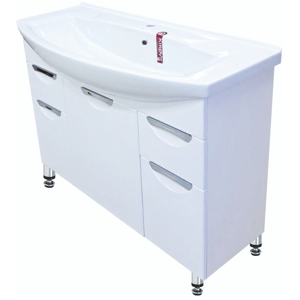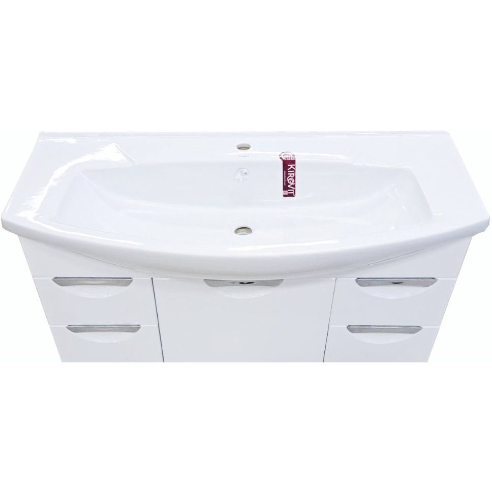 Мебельная раковина Kirovit Элеганс 105, размером 106,5x49 см, изготовлена из прочного фарфора и рассчитана на сифон диаметром 3,2 см (донный клапан приобретается отдельно). Имеется встроенный слив-перелив и одно отверстие под смеситель. Изделие произведено в России и имеет 10-летнюю гарантию.