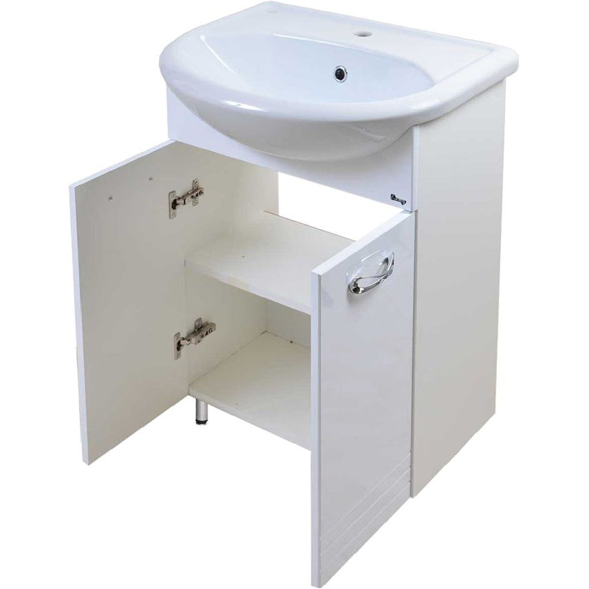 Тумба Emmy Рио 55: Изготовлена из качественного ЛДСП с пленочным покрытием, что придаёт корпусу устойчивость к влажности и долговечность. Фасад выполнен из МДФ, также покрытого пленкой, что не только увеличивает срок службы, но и придаёт изделию современный вид. Тумба имеет напольную конструкцию с габаритами 51x30x78 см и оборудована механизмом доводчика для плавного закрывания дверок. Хромированная фурнитура добавляет элегантности.
