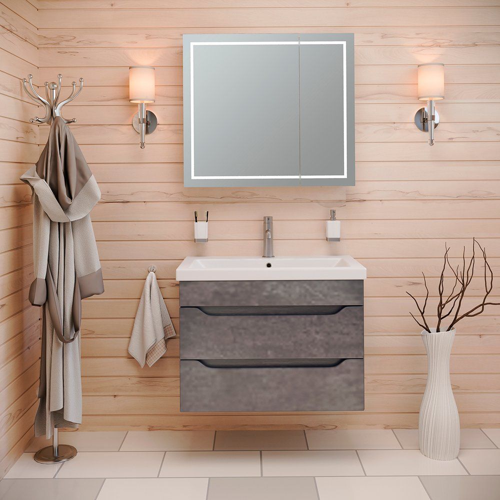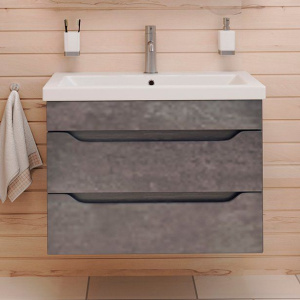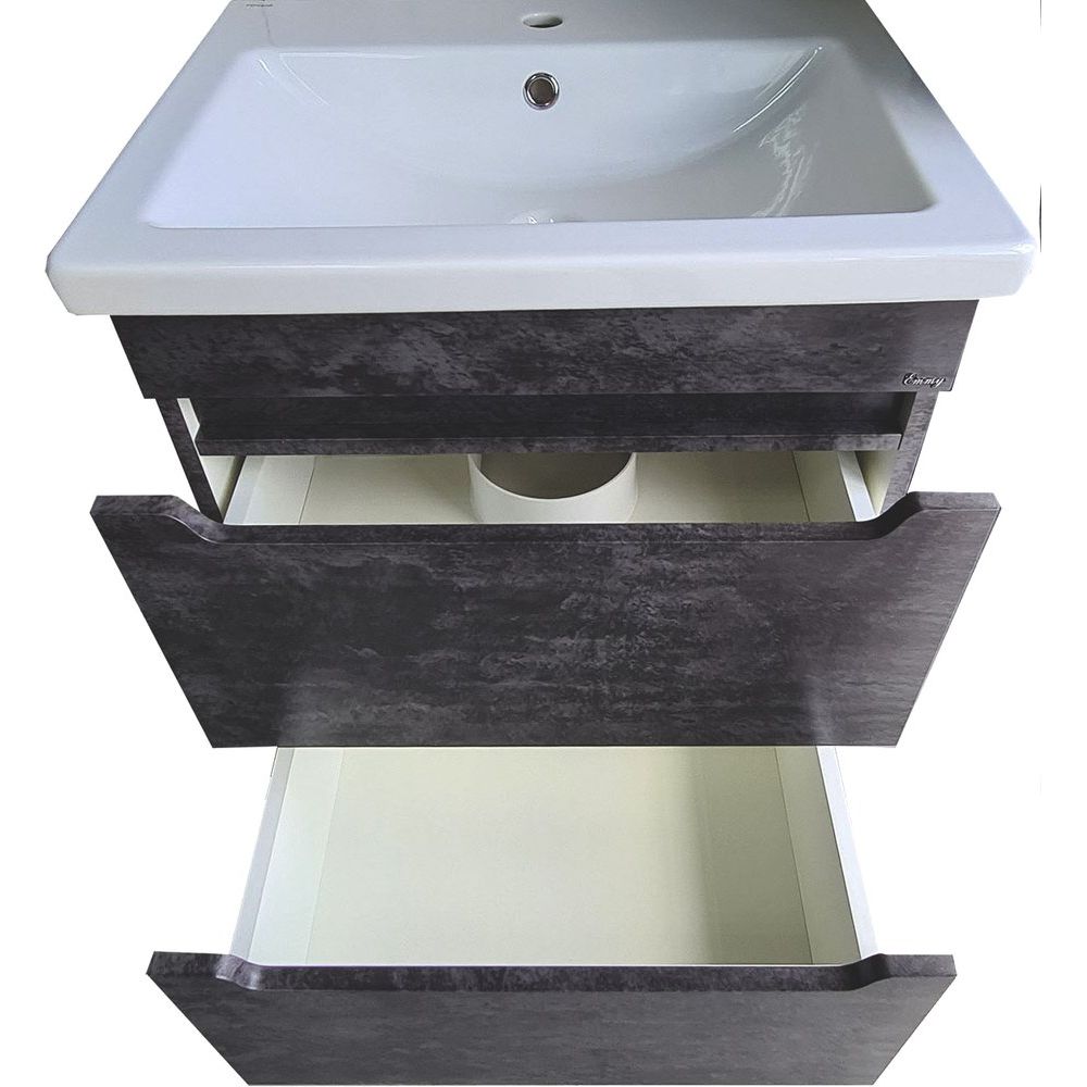 Тумба с раковиной Emmy Стоун 60 подвесная в цвете серый бетон — стильное и функциональное решение для вашей ванной комнаты. Это сочетание модной отделки под бетон и продуманного дизайна, которое идеально впишется в современный интерьер. Оснащенная механизмом доводчика, тумба обеспечивает плавное и тихое закрытие ящиков, что повышает комфорт использования. Изготовлена из высококачественного МДФ с прочным покрытием, которое надежно защищает конструкцию от влаги и механических повреждений.