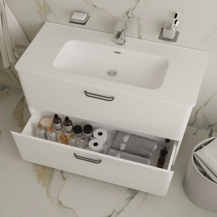 - Идеальное сочетание с мебельной раковиной, выполненной из качественного фарфора с множеством практичных функций.