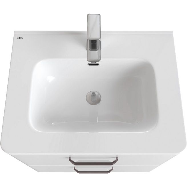 Мебельная раковина из фарфора имеет размеры 60x47 см и оснащена встроенным сливом-переливом, который входит в комплект, как и одно готовое отверстие под смеситель. Для правильной работы раковины нужен сифон диаметром 3,2 см, который подбирается индивидуально.