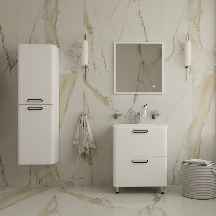 Комплект представляет собой напольную тумбу IDDIS Brick 60, которая имеет габариты 58,2x45,5x81 см. Ее корпус и фасад выполнены из МДФ с покрытием из эмали и ламината, а фурнитура украшена в стиле состаренного олова. Тумба оснащена ящиками с механизмом доводчика, который обеспечивает плавное закрывание.