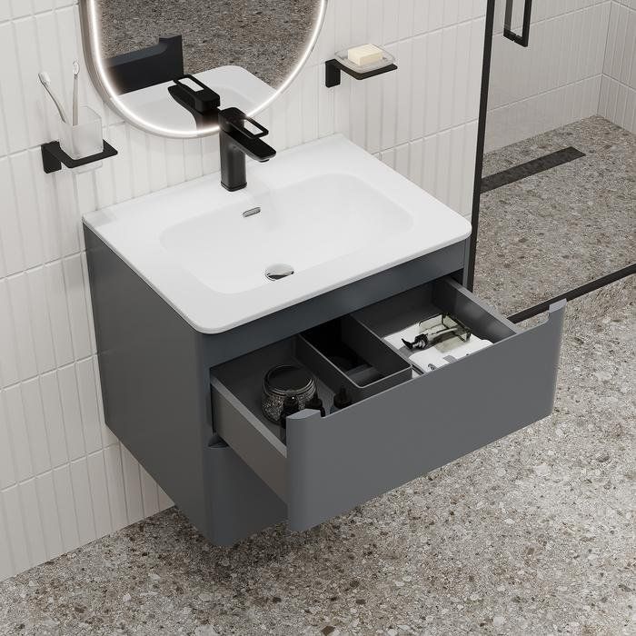 Создайте стильный и функциональный интерьер ванной комнаты с новой тумбой IDDIS Edifice 60 подвесной в темно-сером цвете. Эта мебель для ванной гармонично сочетает в себе современный дизайн и практичность. Подвесная конструкция тумбы создает ощущение воздушности и упрощает уборку, а прекрасное сочетание материалов и цвета добавит шарма любому интерьеру.