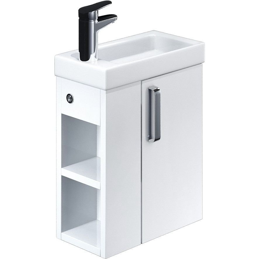 Эта мебель включает в себя тумбу и раковину. Подвесная тумба IDDIS Torr 40 L имеет габариты 39x21,3x60 см. Она изготовлена из ДСП с эмалевым покрытием, что придает ей изысканный вид. Фасад также выполнен из ДСП и покрыт эмалью, идеально сочетаясь с хромовой фурнитурой. В тумбе предусмотрены дверцы и открытые полки для удобного хранения необходимых мелочей.